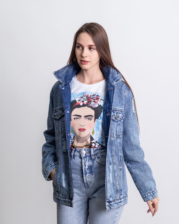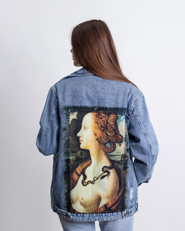 Джинсовая куртка Портрет Симонетты В.Б. - Купить с доставкой по России в магазине Bullfinch. Джинсовые куртки, Женская одежда. Гипоаллергенные краски. Премиальное качество. Размеры: S, XXL