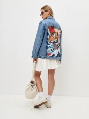 Джинсовая куртка Тигр - Купить с доставкой по России в магазине Bullfinch. Джинсовые куртки, Женская одежда. Гипоаллергенные краски. Премиальное качество. Размеры: XS, S