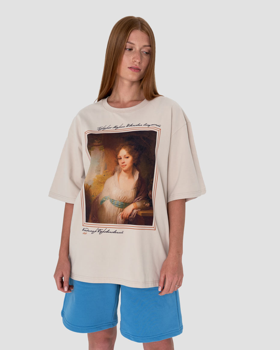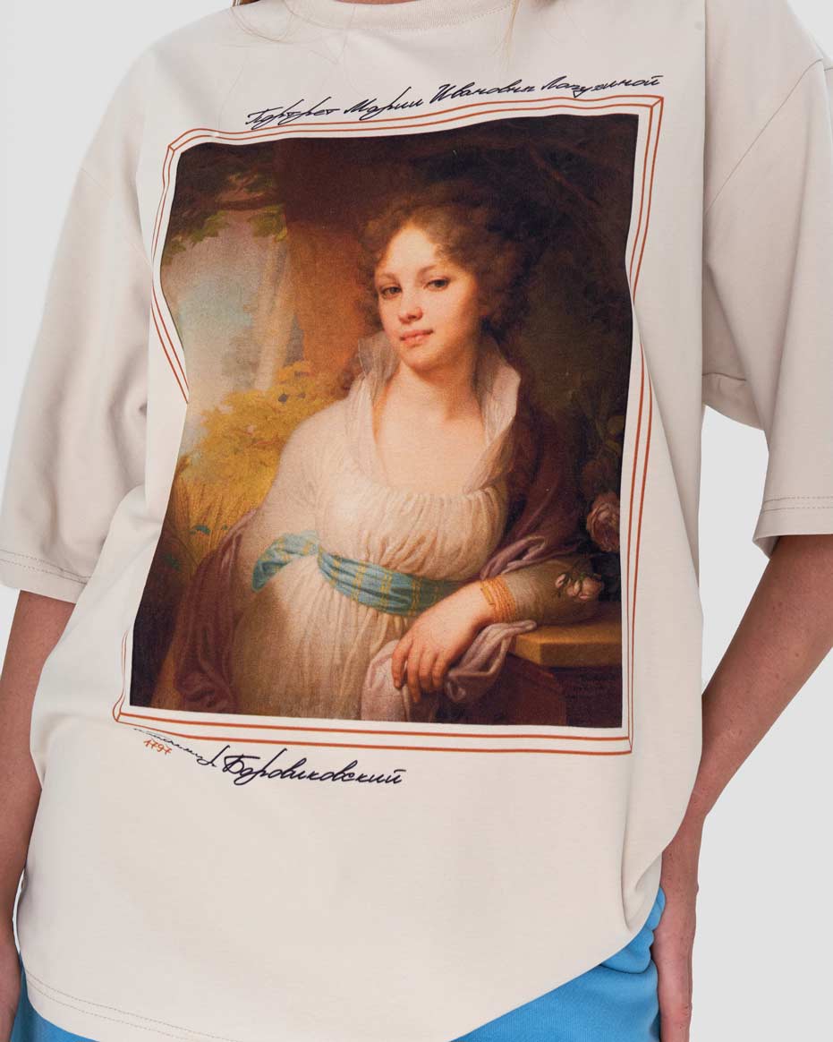 Футболка Портрет Марии. Третьяковская Галерея - Купить с доставкой по России в магазине Bullfinch. Уни оверсайз, Женская одежда. Гипоаллергенные краски. Премиальное качество. Размеры: L
