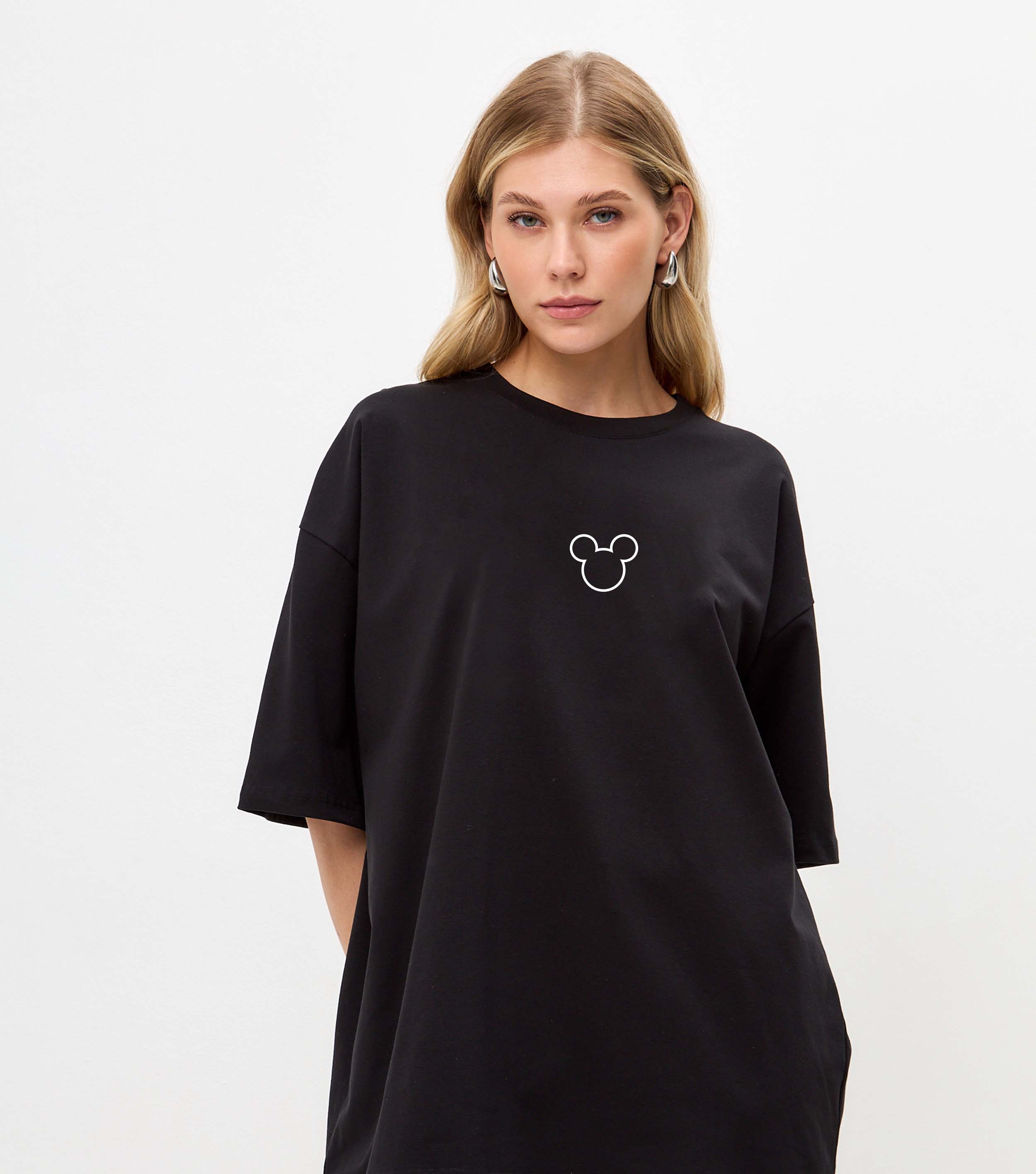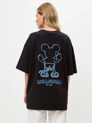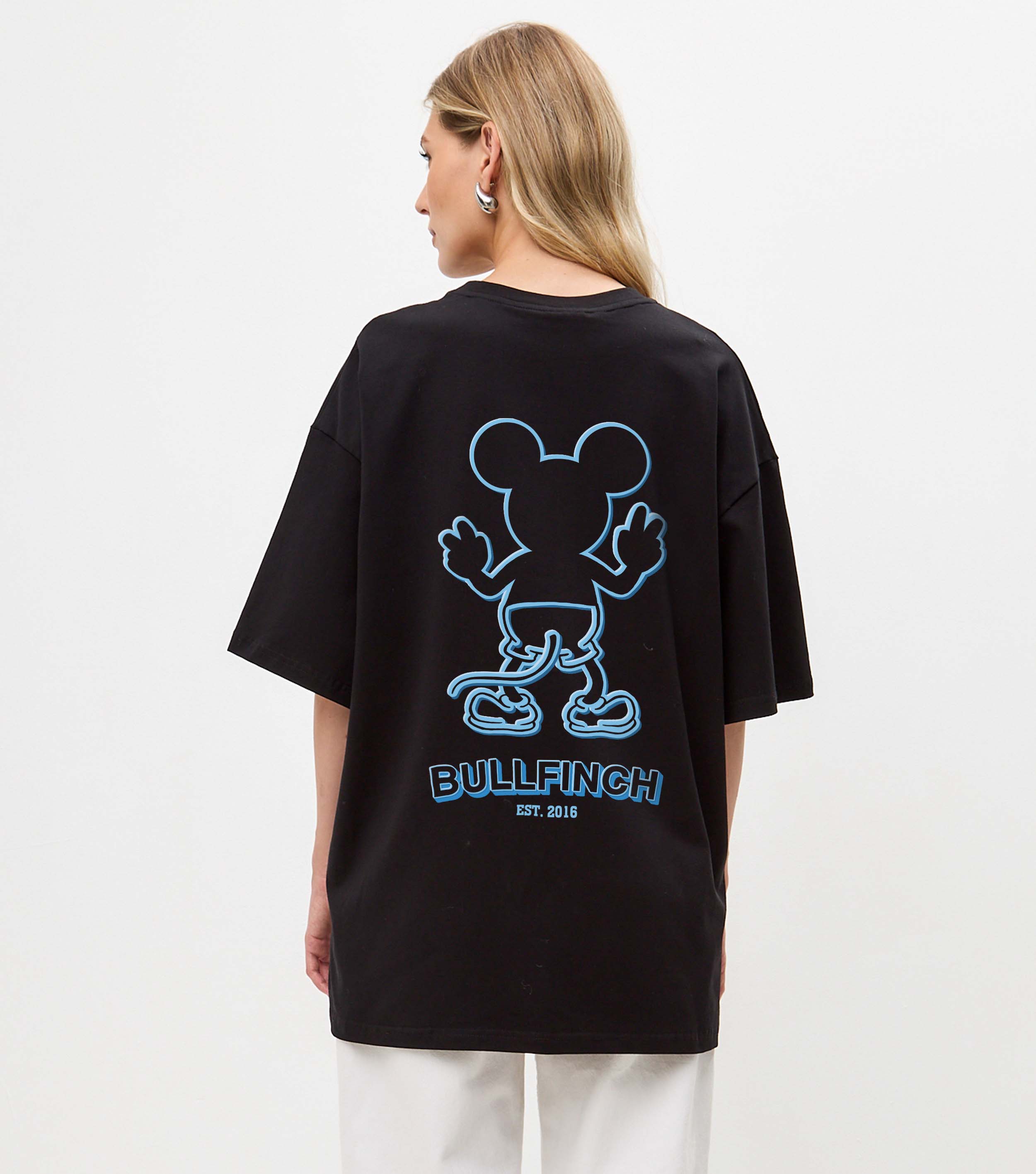 Футболка Микки Маус черная - Купить с доставкой по России в магазине Bullfinch. Уни оверсайз, Женская одежда. Гипоаллергенные краски. Премиальное качество. Размеры: S