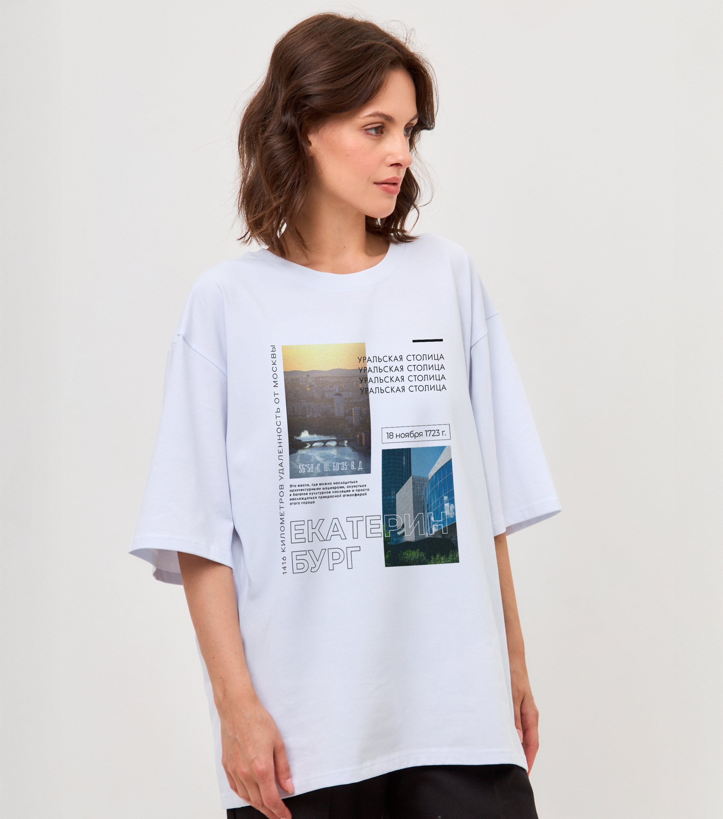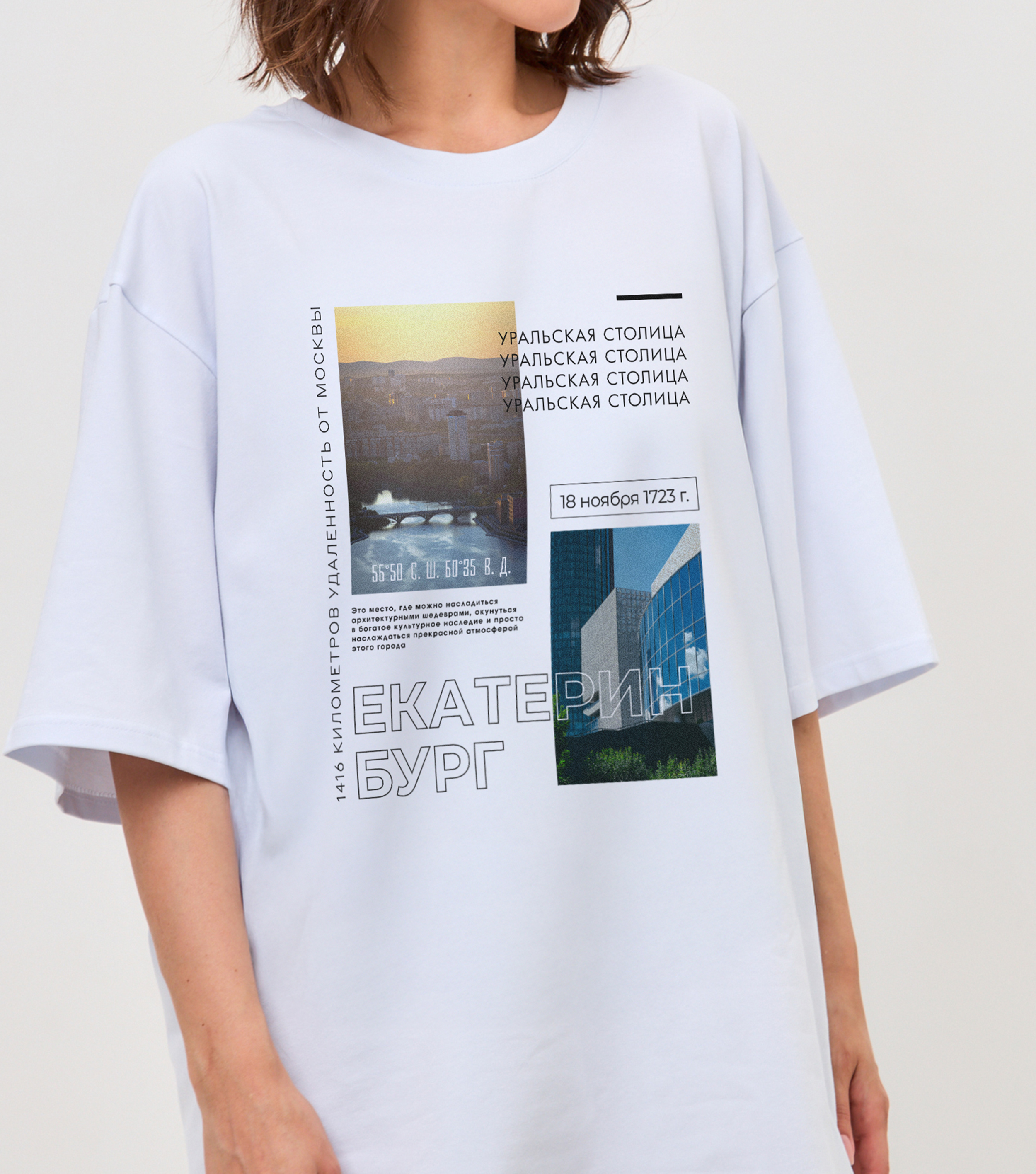 Футболка Екатеринбург - Купить с доставкой по России в магазине Bullfinch. Уни оверсайз, Женская одежда. Гипоаллергенные краски. Премиальное качество. Размеры: XS, S, M, L, XL, XXL