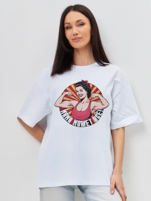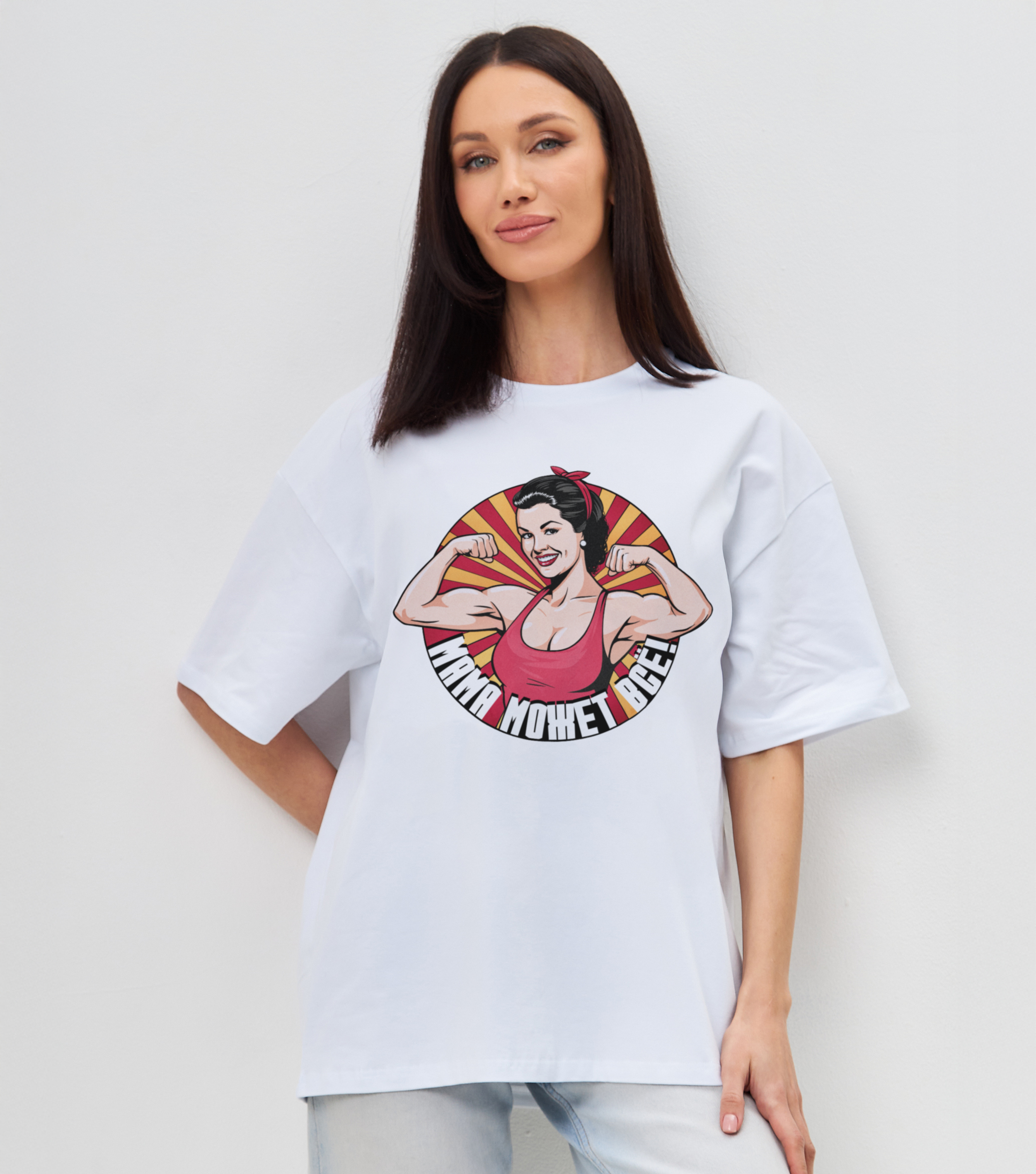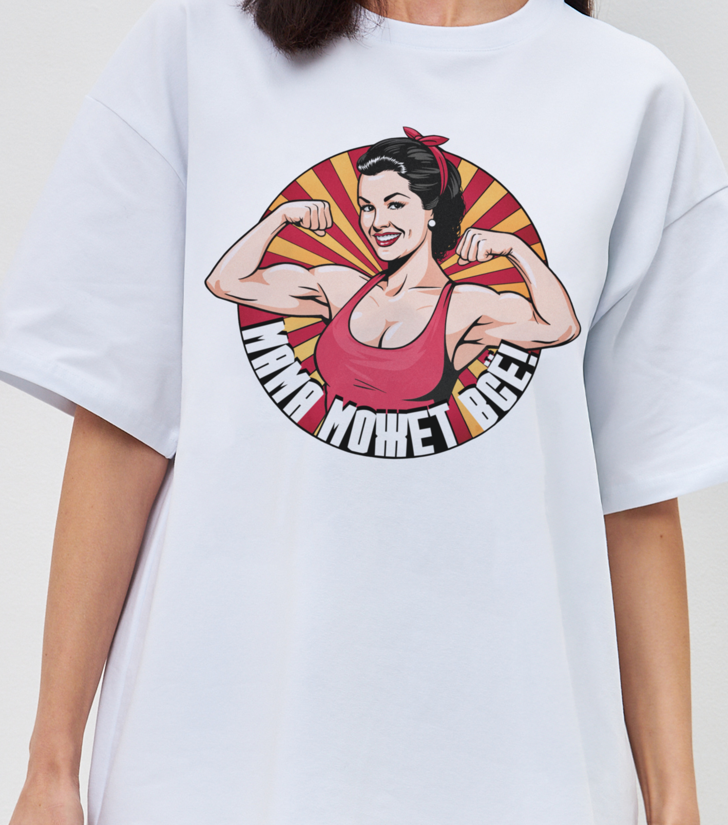 Футболка Мама может все! - Купить с доставкой по России в магазине Bullfinch. Уни оверсайз, Женская одежда. Гипоаллергенные краски. Премиальное качество. Размеры: XS, S, M, L, XL, XXL