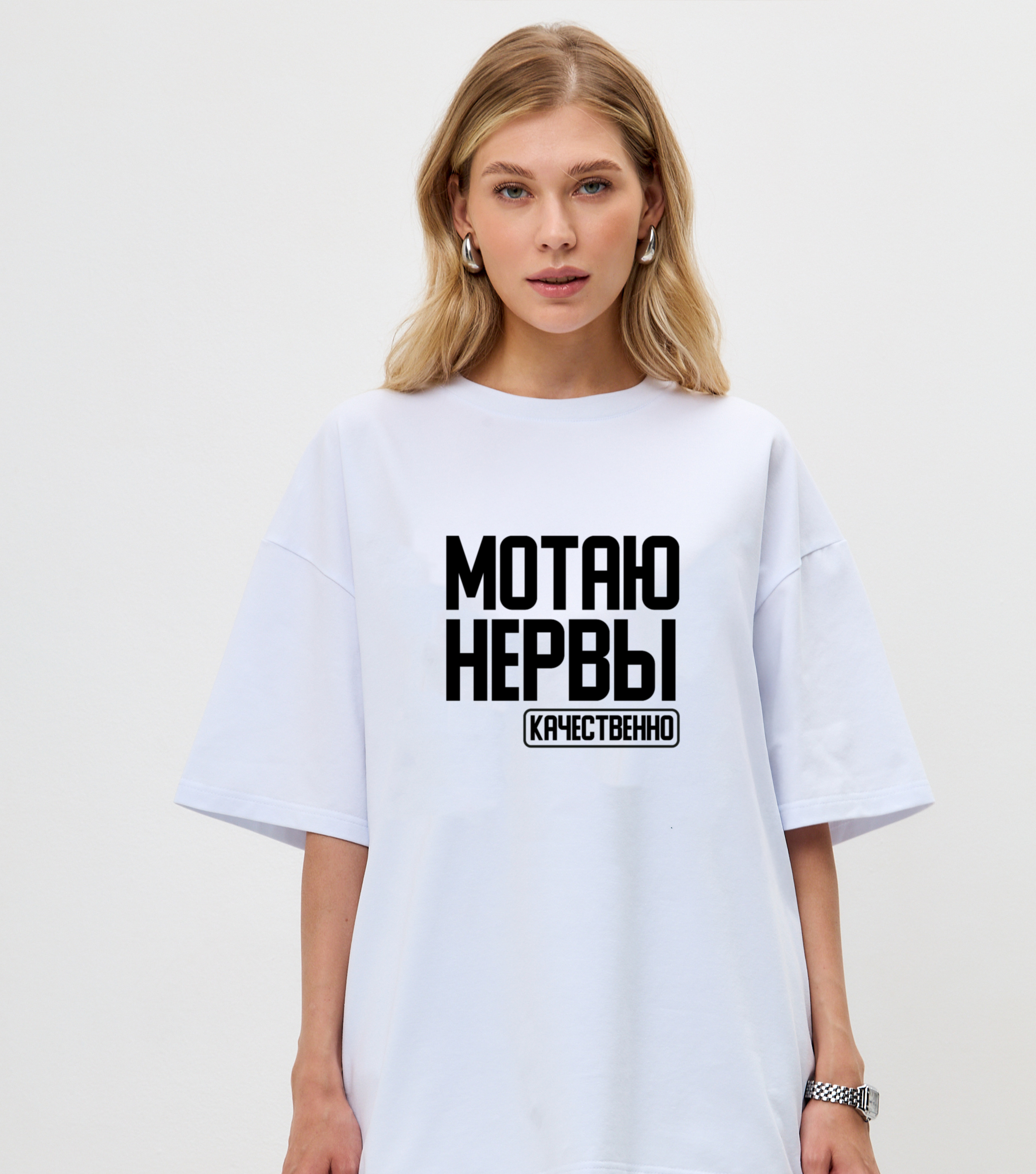Футболка Мотаю Нервы - Купить с доставкой по России в магазине Bullfinch. Уни оверсайз, Женская одежда. Гипоаллергенные краски. Премиальное качество. Размеры: XS, S, M, L, XL