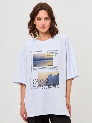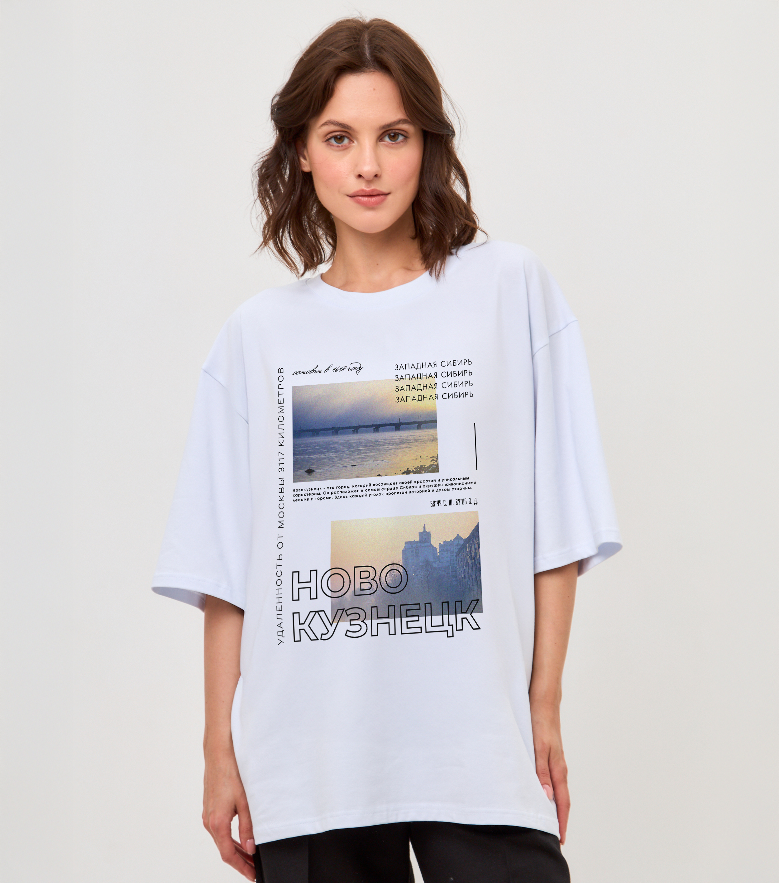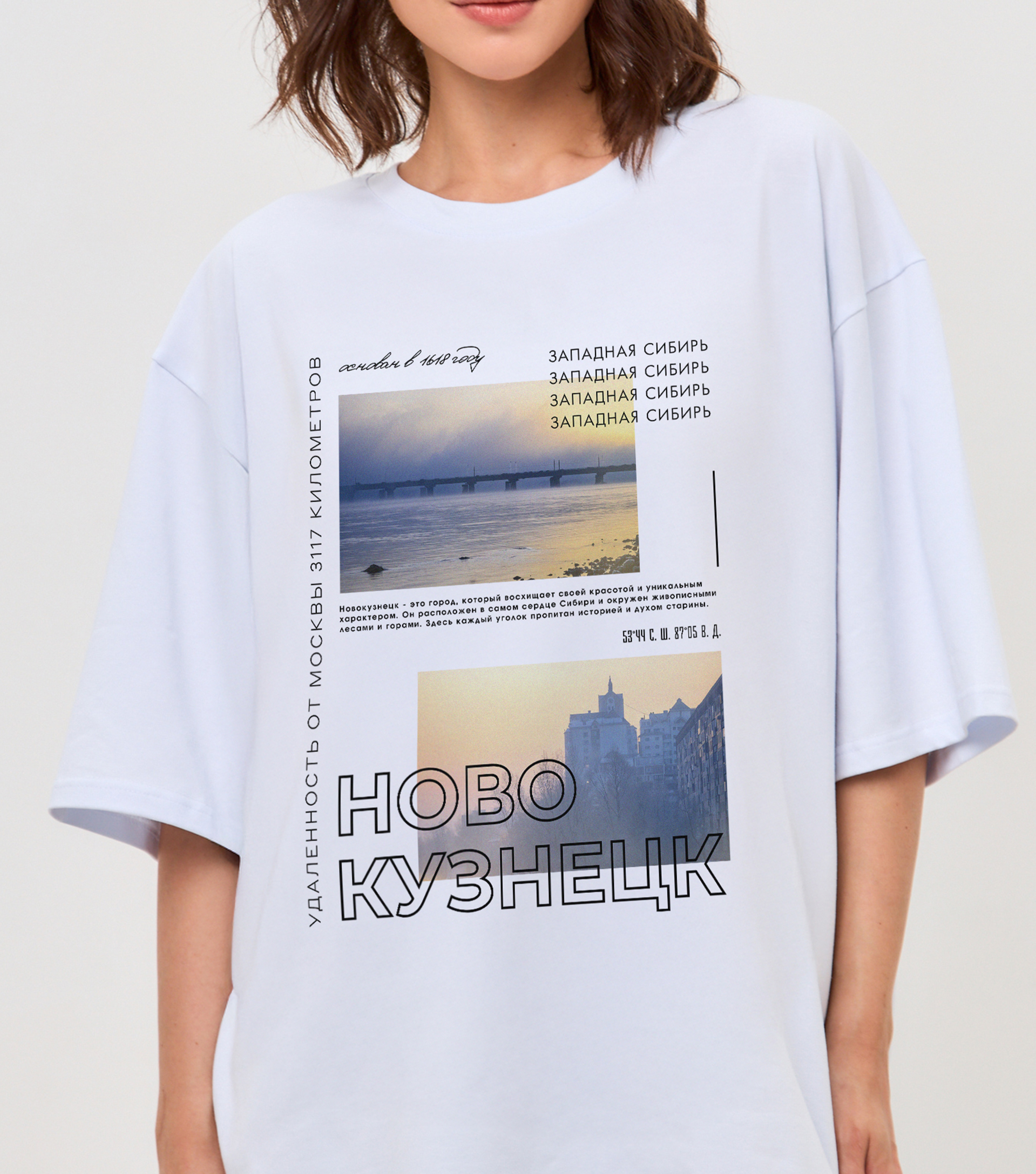 Футболка Новокузнецк - Купить с доставкой по России в магазине Bullfinch. Уни оверсайз, Женская одежда. Гипоаллергенные краски. Премиальное качество. Размеры: XS, S, M, L, XL, XXL