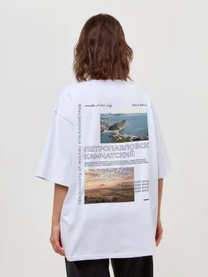 Футболка Петропавловск - Камчатский - Купить с доставкой по России в магазине Bullfinch. Уни оверсайз, Женская одежда. Гипоаллергенные краски. Премиальное качество. Размеры: XS, S, M, L, XL, XXL