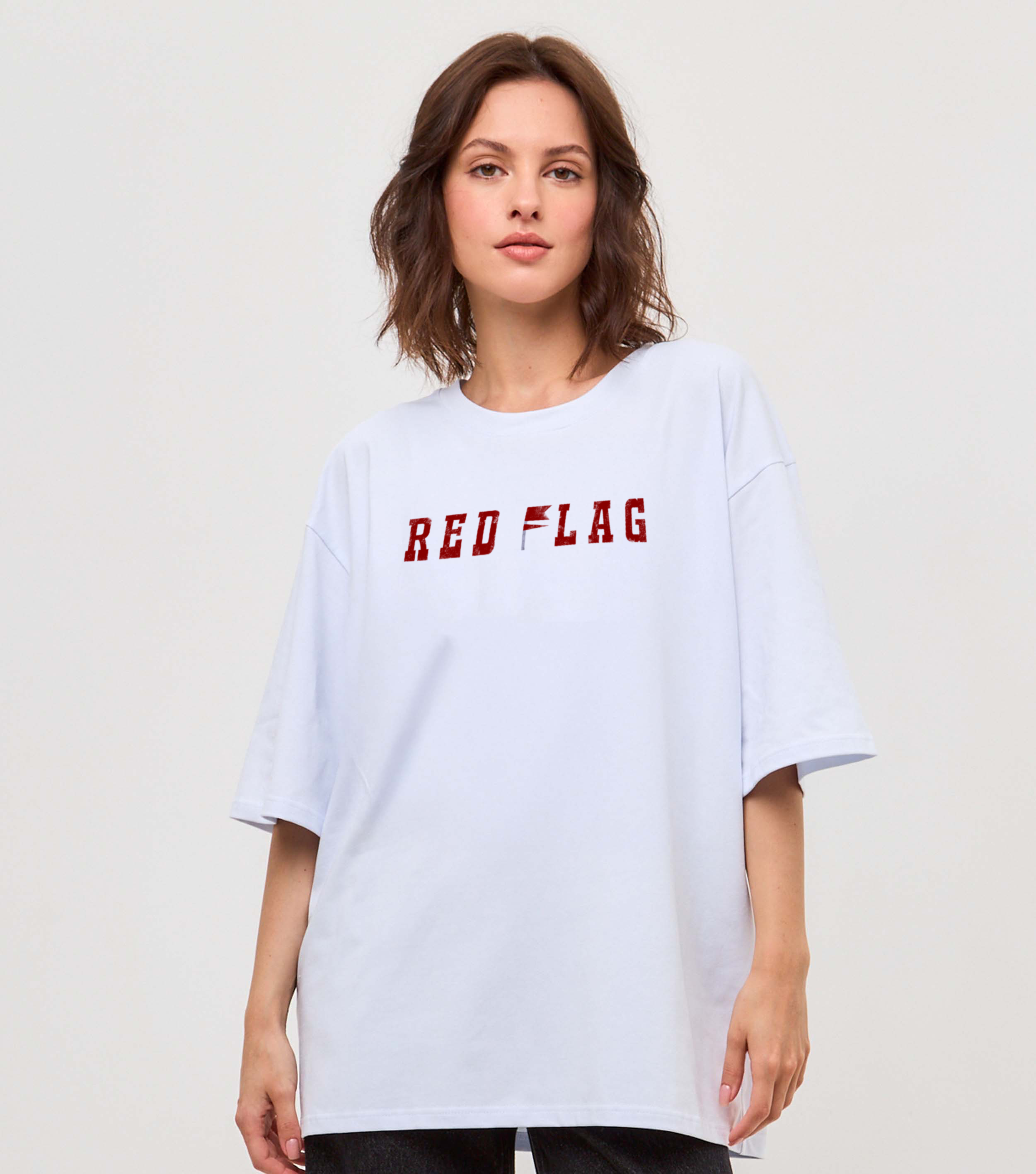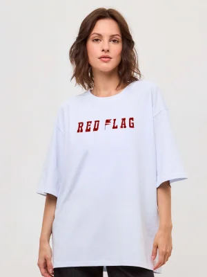 Футболка Red Flag - Купить с доставкой по России в магазине Bullfinch. Уни оверсайз, Женская одежда. Гипоаллергенные краски. Премиальное качество. Размеры: XS, S, M, L, XL, XXL
