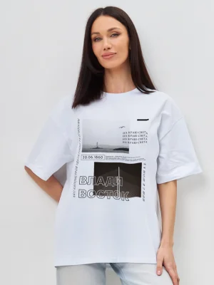 Футболка Владивосток - Купить с доставкой по России в магазине Bullfinch. Уни оверсайз, Женская одежда. Гипоаллергенные краски. Премиальное качество. Размеры: XS, S, M, L, XL, XXL