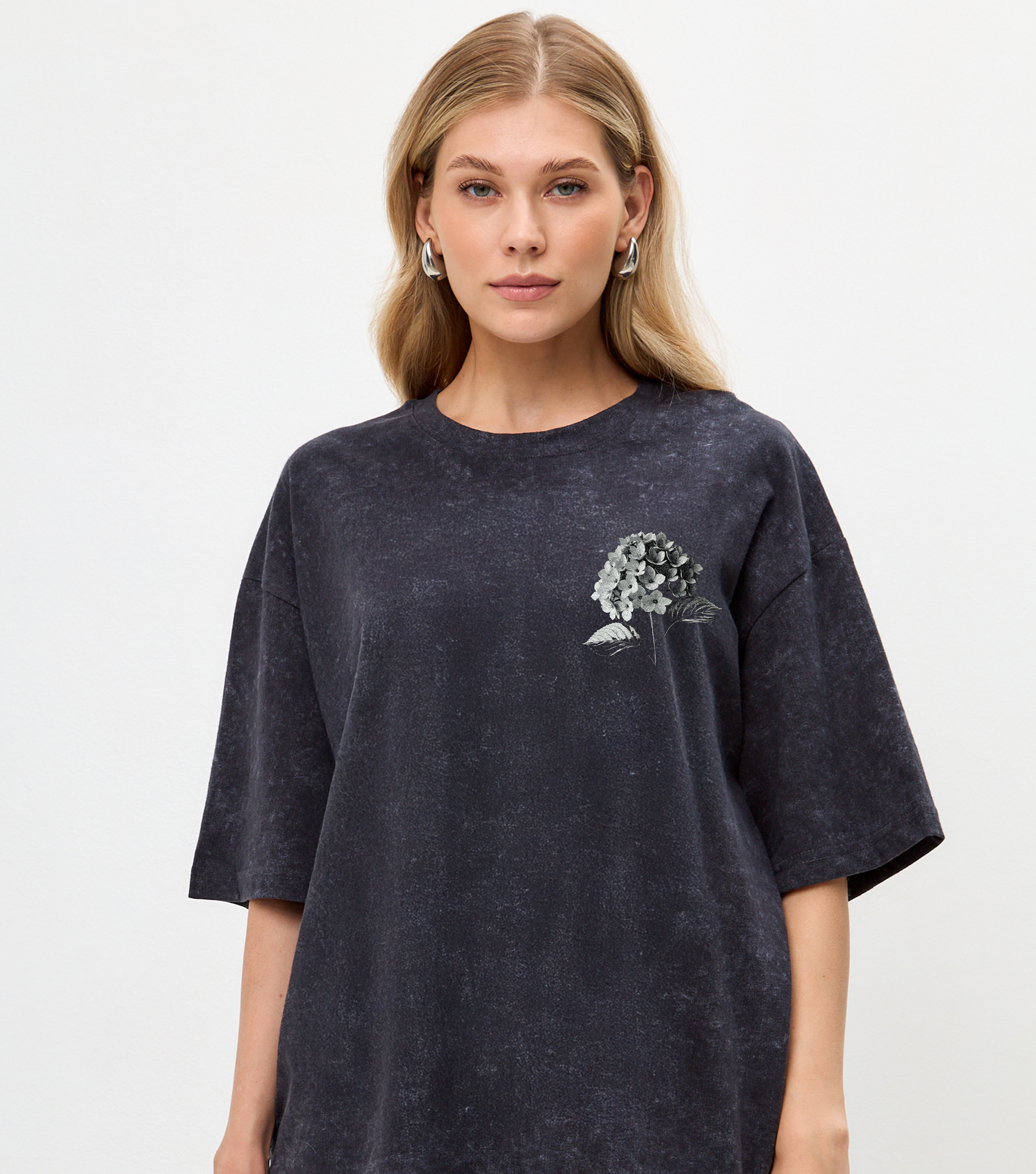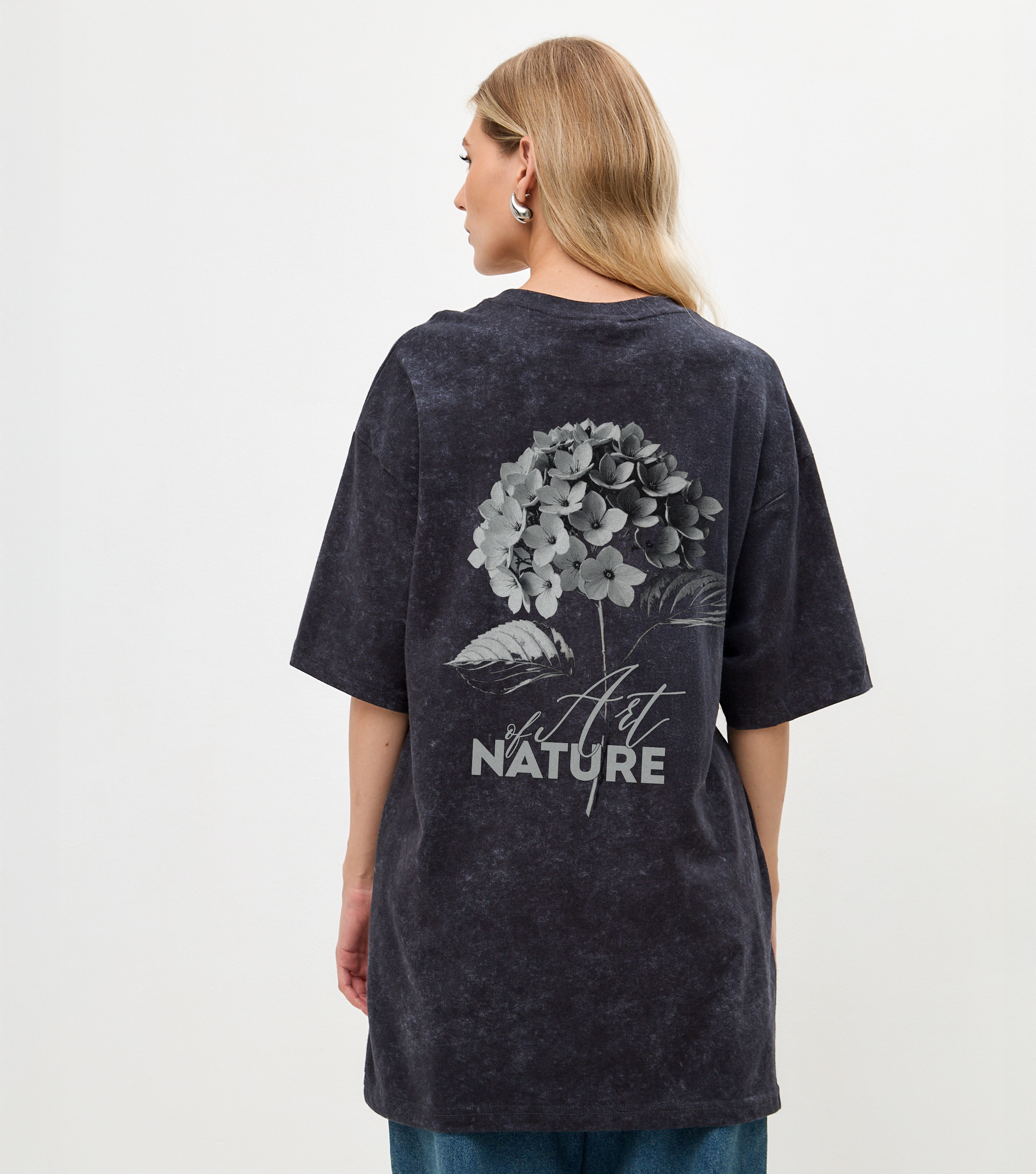 Футболка Гортензия - Купить с доставкой по России в магазине Bullfinch. С вареным эффектом, Женская одежда. Гипоаллергенные краски. Премиальное качество. Размеры: S, M, L, XL