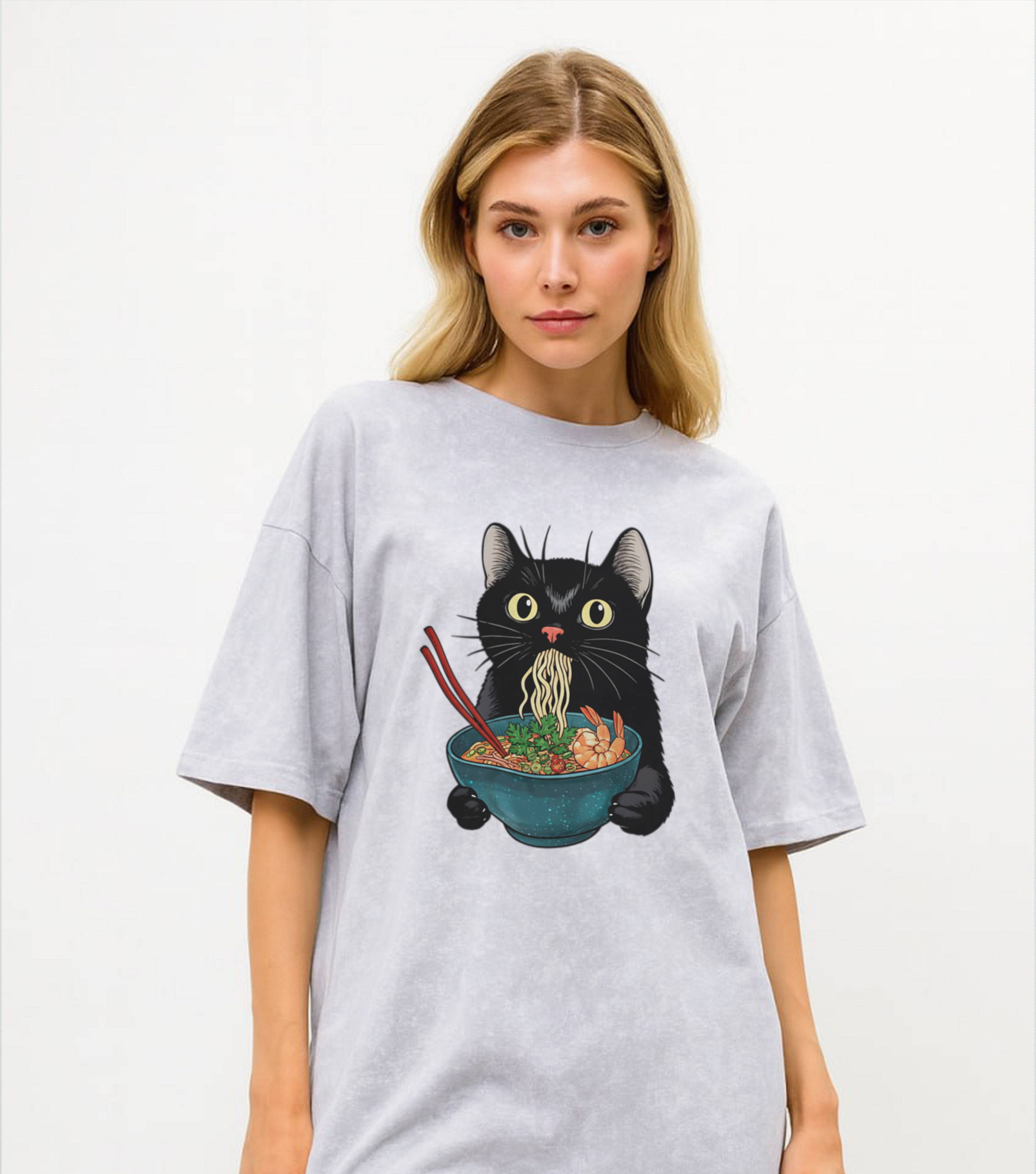 Футболка Кот Азия - Купить с доставкой по России в магазине Bullfinch. С вареным эффектом, Женская одежда. Гипоаллергенные краски. Премиальное качество. Размеры: XS, S, M, L, XL