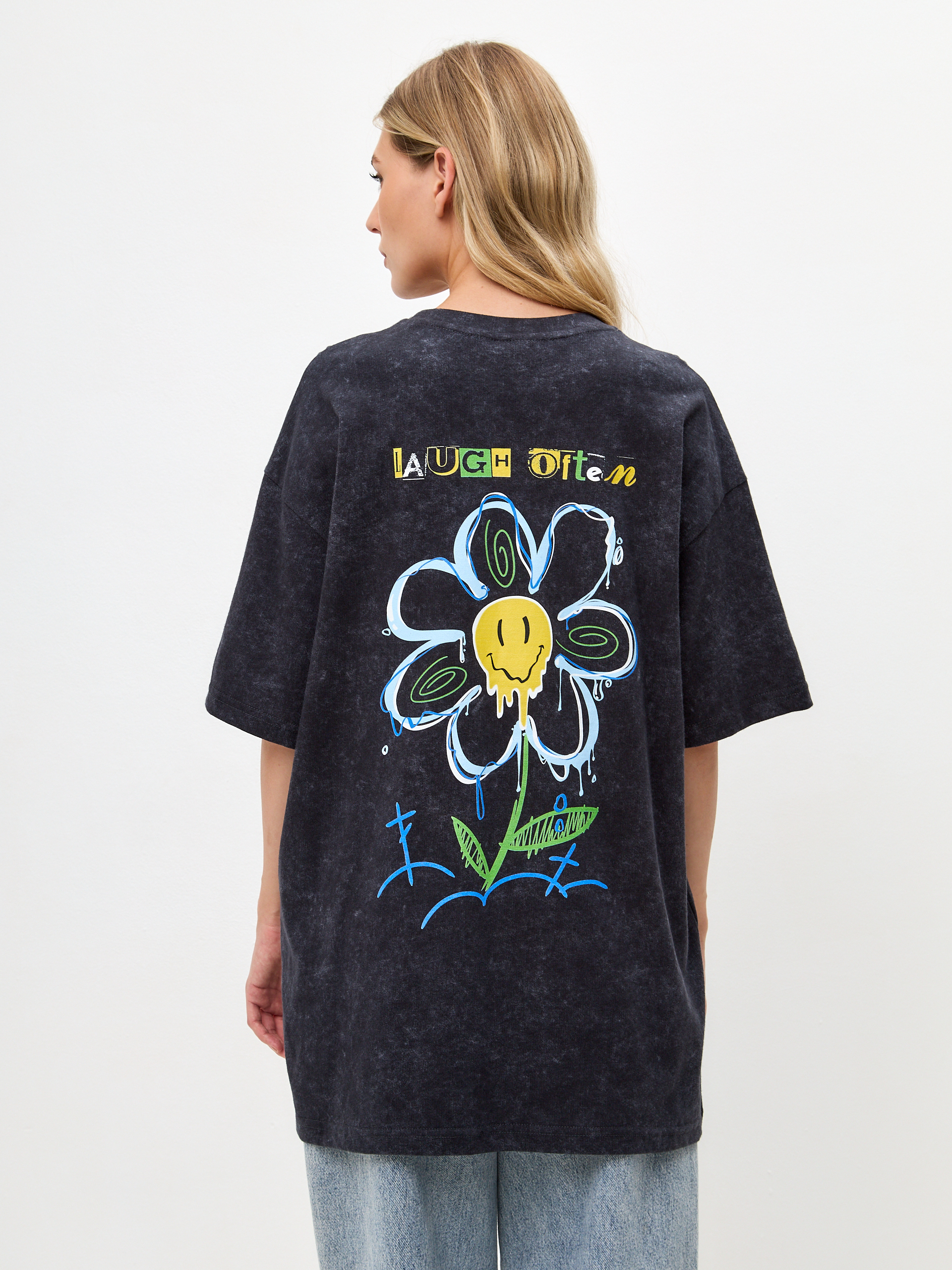 Футболка Ромашка - Купить с доставкой по России в магазине Bullfinch. С вареным эффектом, Женская одежда. Гипоаллергенные краски. Премиальное качество. Размеры: M, L, XL