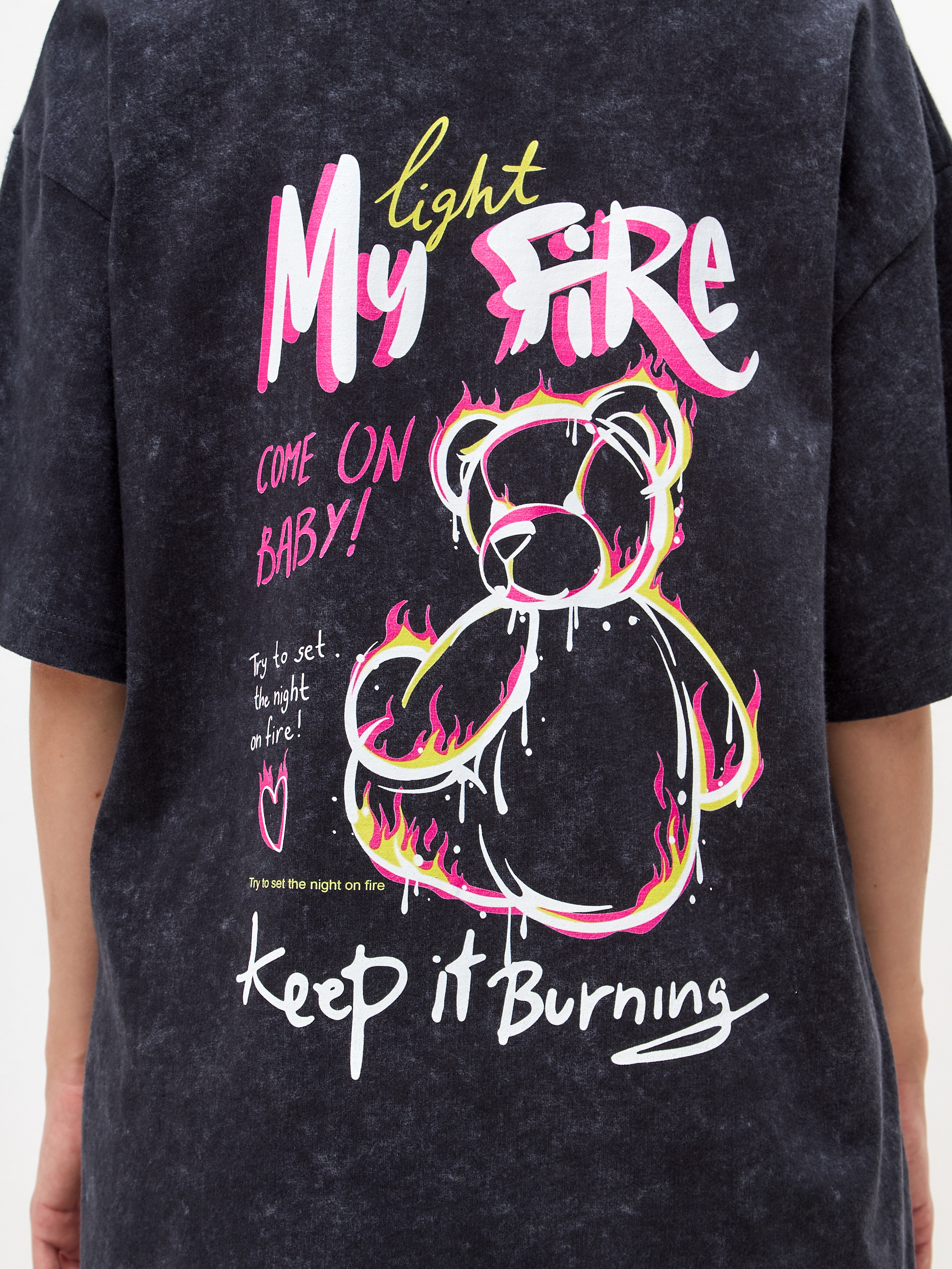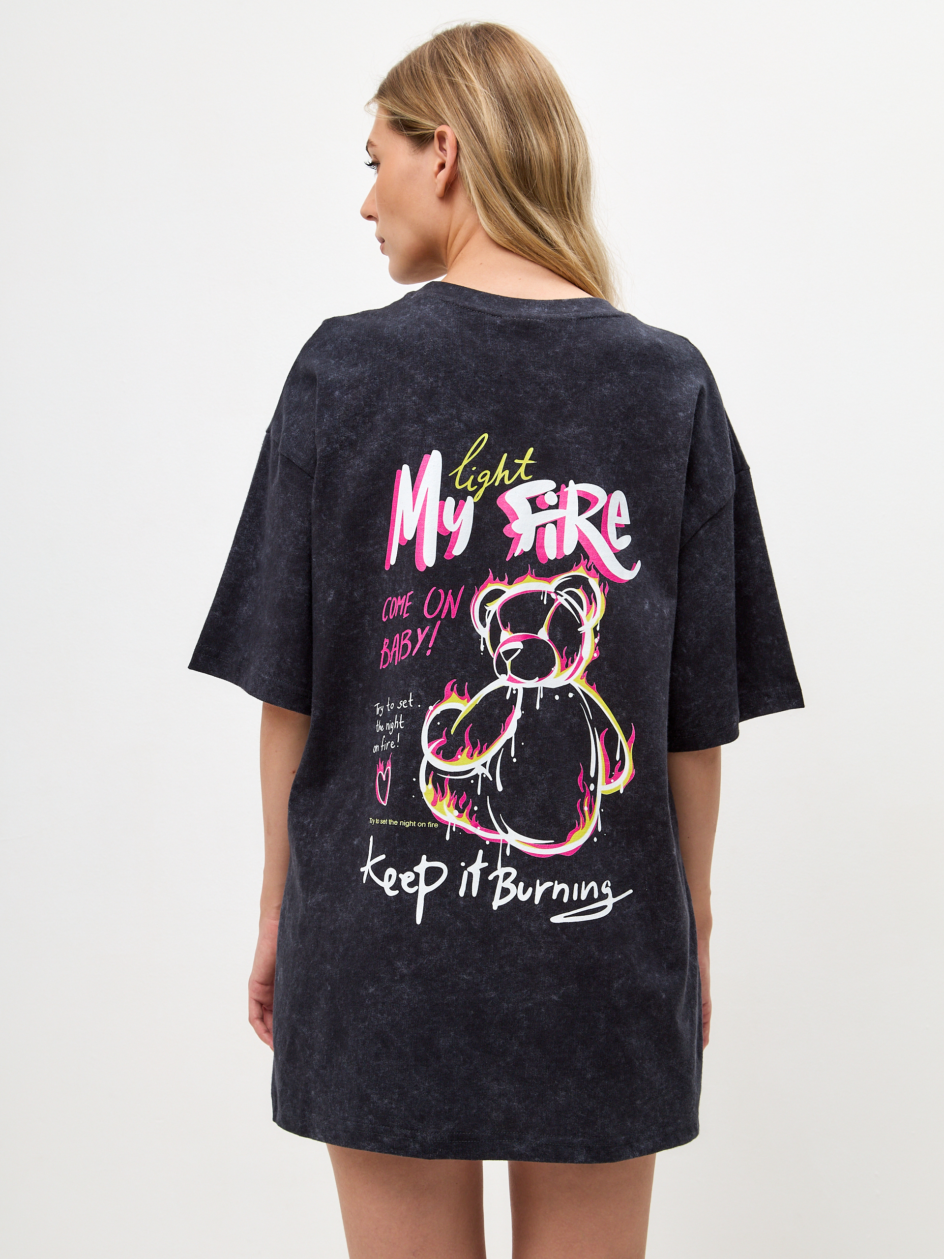 Футболка Teddy My Fire - Купить с доставкой по России в магазине Bullfinch. С вареным эффектом, Женская одежда. Гипоаллергенные краски. Премиальное качество. Размеры: M, L, XL