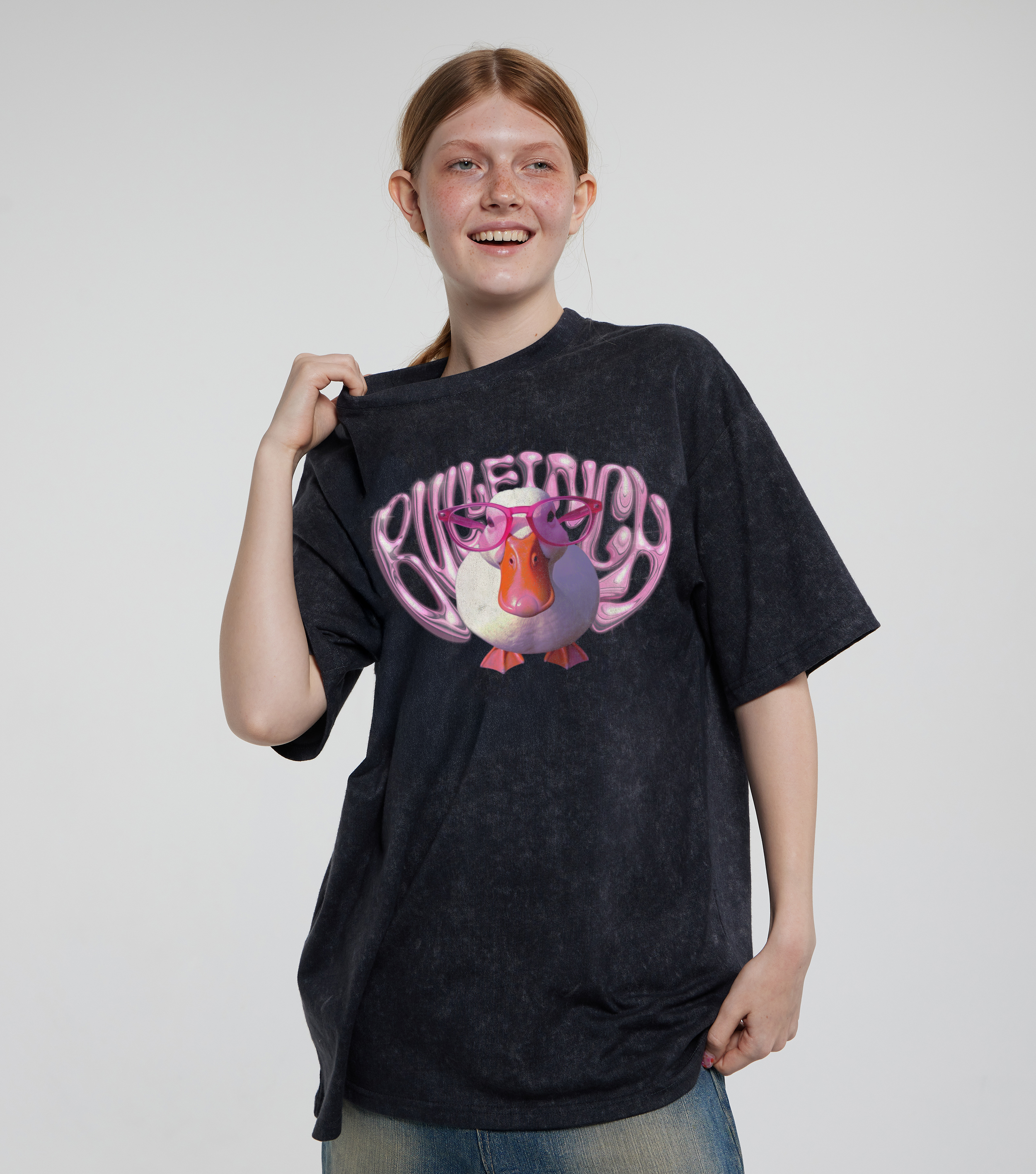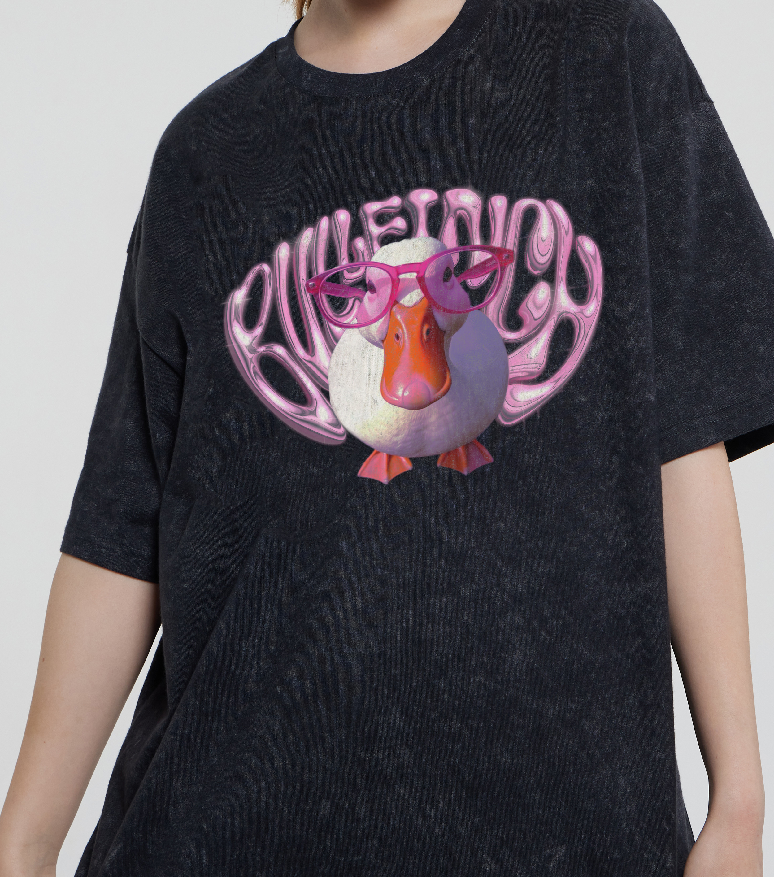 Футболка Утка в очках - Купить с доставкой по России в магазине Bullfinch. С вареным эффектом, Женская одежда. Гипоаллергенные краски. Премиальное качество. Размеры: M, L, XL