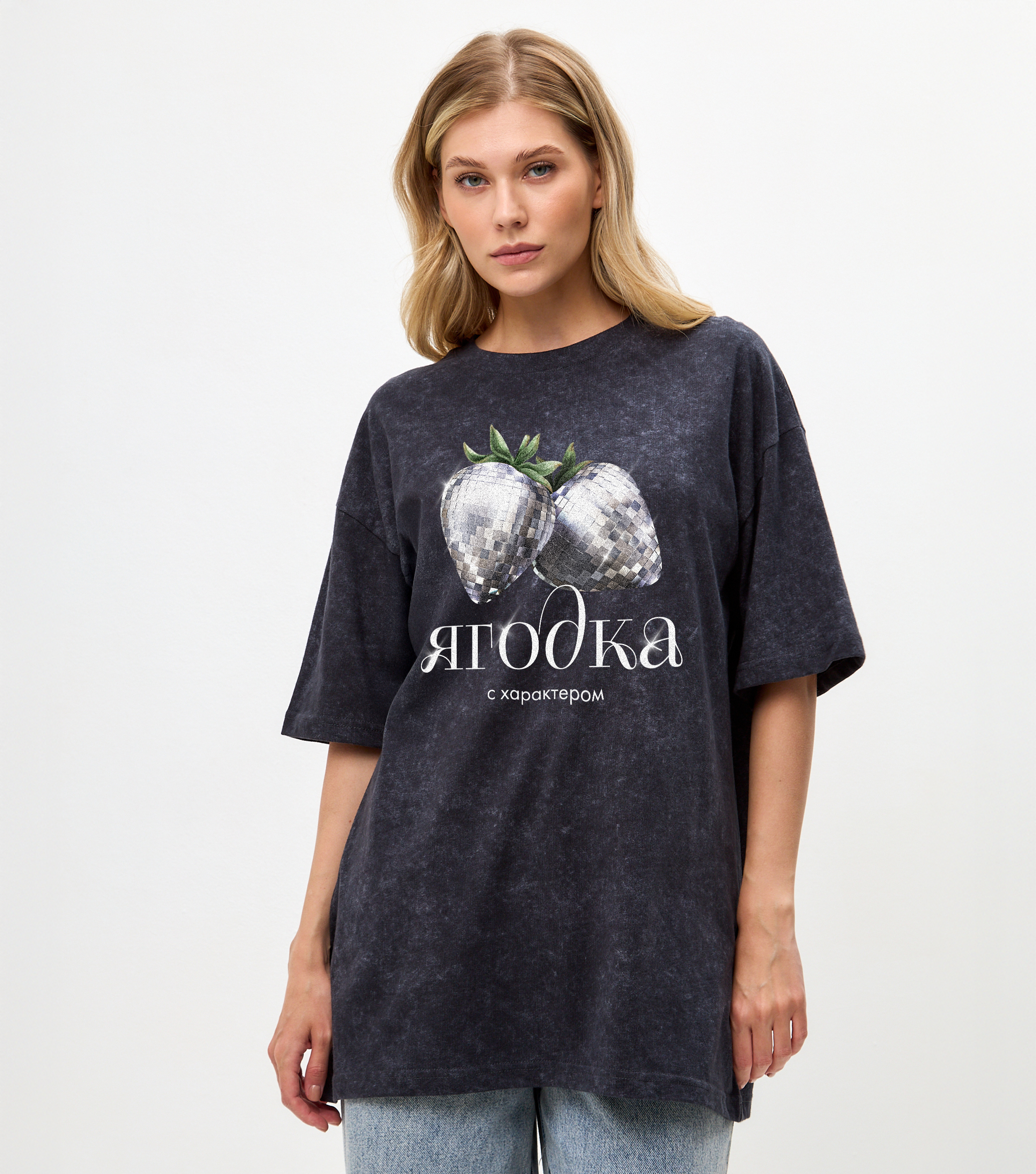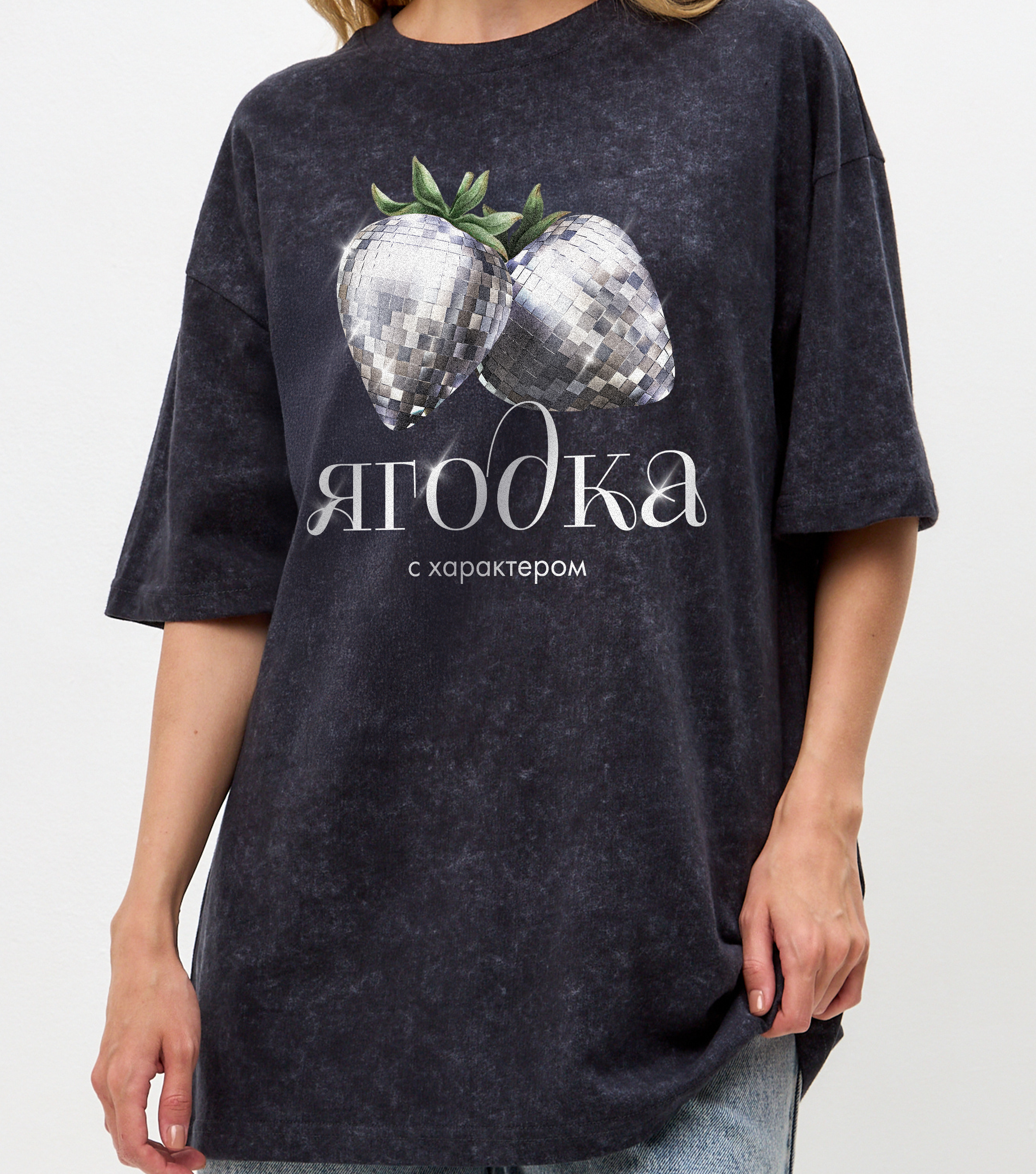 Футболка Ягодка с характером - Купить с доставкой по России в магазине Bullfinch. С вареным эффектом, Женская одежда. Гипоаллергенные краски. Премиальное качество. Размеры: S, M, L, XL