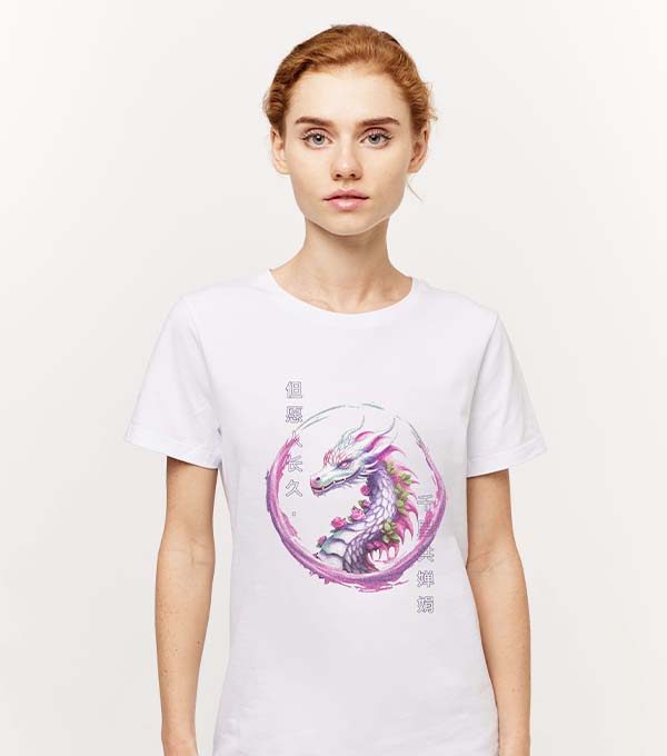 Футболка Китайский дракон - Купить с доставкой по России в магазине Bullfinch. Приталенные футболки, Женская одежда. Гипоаллергенные краски. Премиальное качество. Размеры: L, XL, XXL