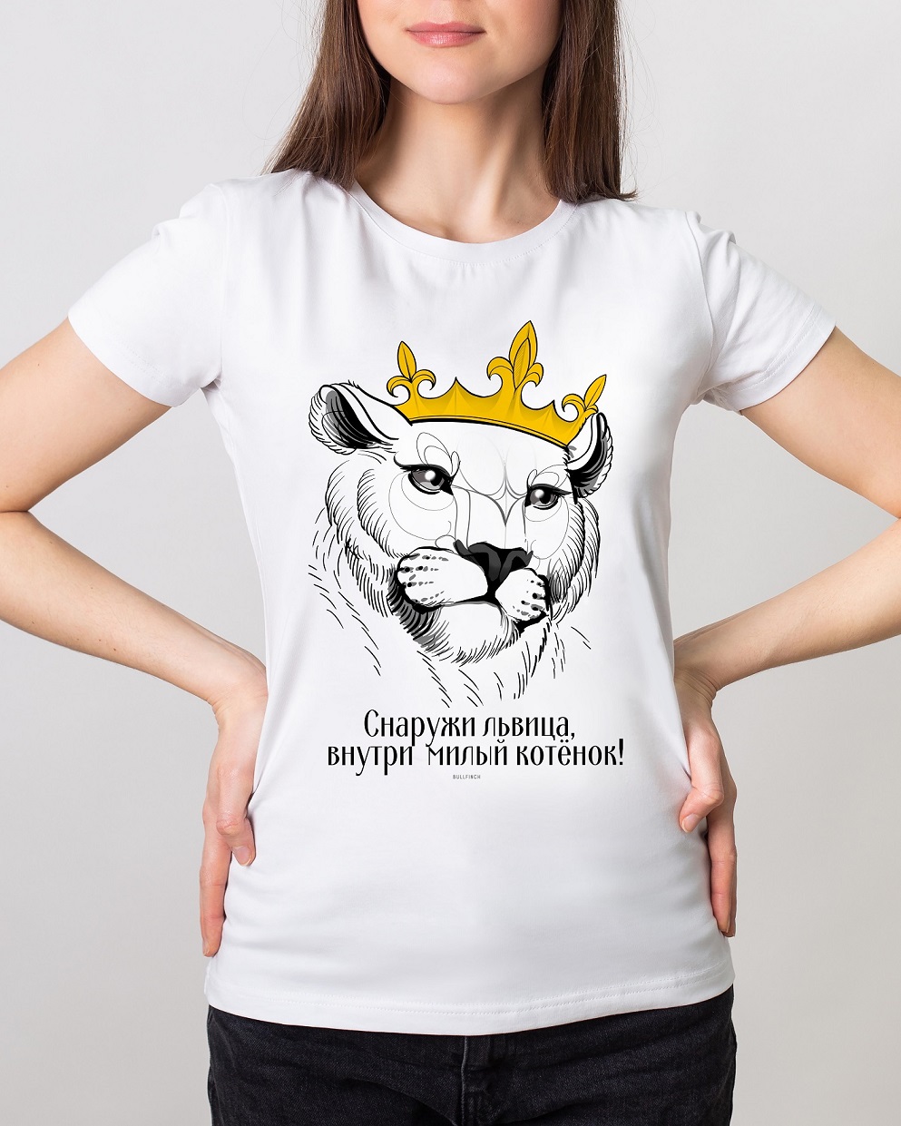 Футболка Львица с короной - Купить с доставкой по России в магазине Bullfinch. Приталенные футболки, Женская одежда. Гипоаллергенные краски. Премиальное качество. Размеры: L, XL, XXL