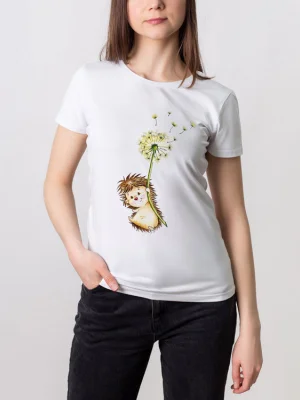 Данная модель с легкостью внесет в твой аутфит нотку юности и романтичного настроения. Очаровательный ежик держит одуванчик, который, кстати, является символом беззаботного детства. Потрясающая картина, заставляющая улыбнуться и беспрерывно умиляться.