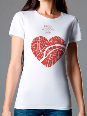 Футболка From Moscow with love - Купить с доставкой по России в магазине Bullfinch. Приталенные футболки, Женская одежда. Гипоаллергенные краски. Премиальное качество. Размеры: L, XL