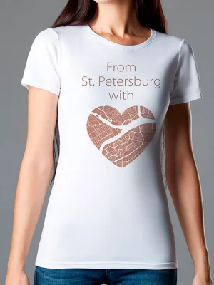 Футболка From St. Petersburg with love - Купить с доставкой по России в магазине Bullfinch. Приталенные футболки, Женская одежда. Гипоаллергенные краски. Премиальное качество. Размеры: L, XL