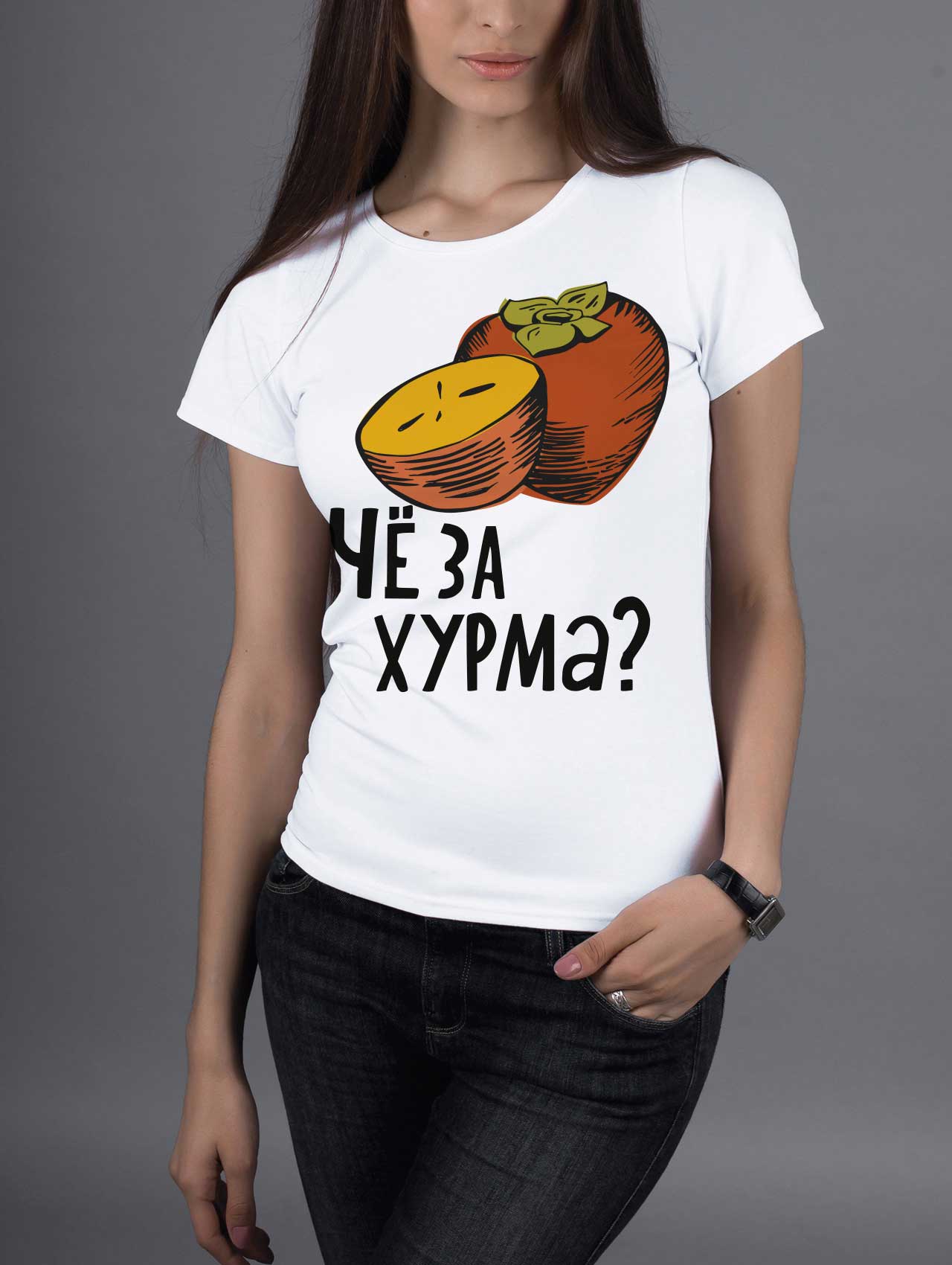 Футболка Хурма! Че за Хурма? - Купить с доставкой по России в магазине Bullfinch. Приталенные футболки, Женская одежда. Гипоаллергенные краски. Премиальное качество. Размеры: L, XL, XXL