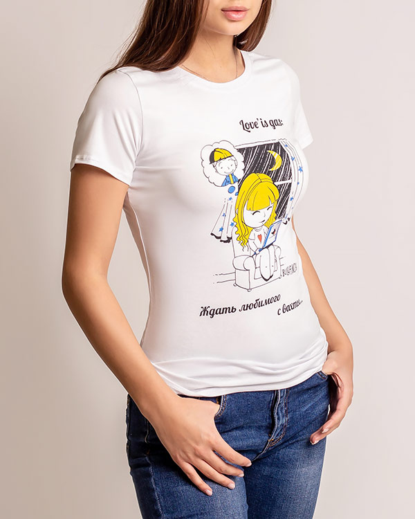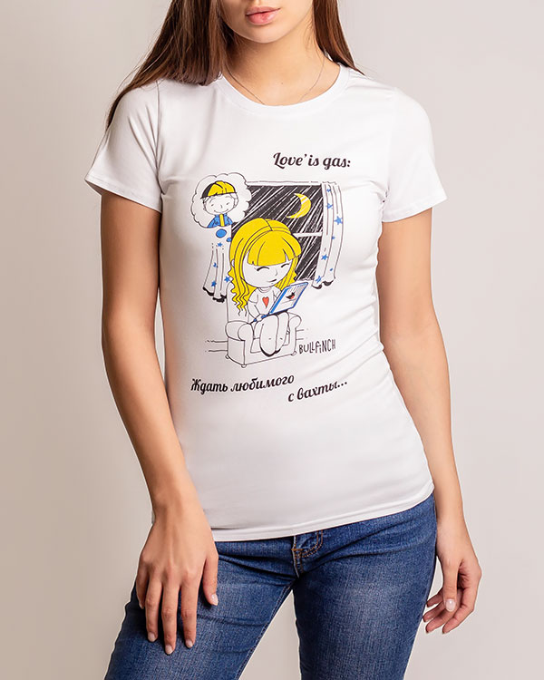 Футболка Love is gas - Купить с доставкой по России в магазине Bullfinch. Приталенные футболки, Женская одежда. Гипоаллергенные краски. Премиальное качество. Размеры: L, XL, XXL