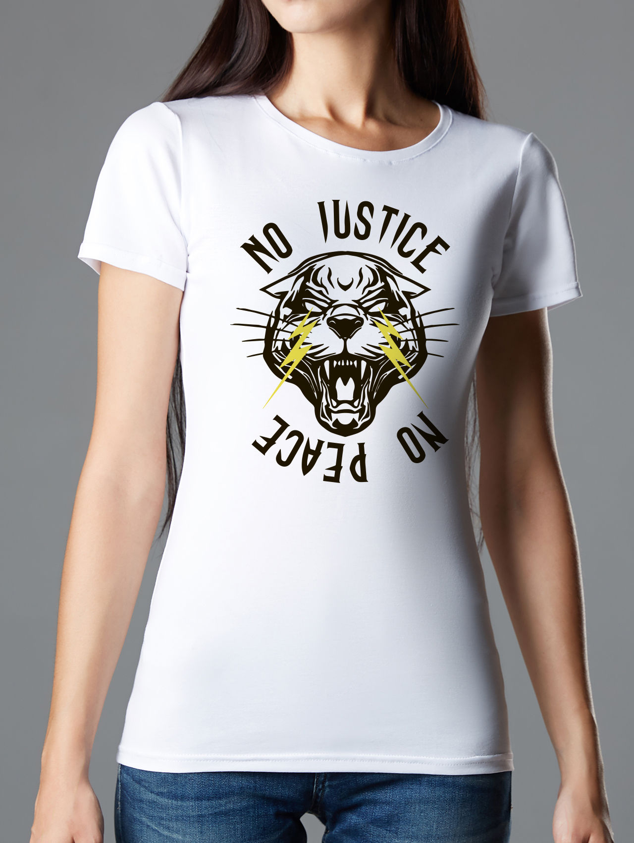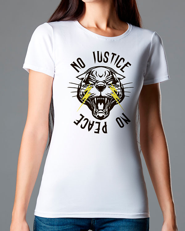 Футболка No justice, no peace - Купить с доставкой по России в магазине Bullfinch. Приталенные футболки, Женская одежда. Гипоаллергенные краски. Премиальное качество. Размеры: L, XL