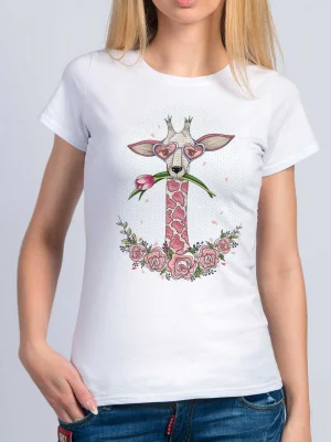 Футболка Розовый жираф - Купить с доставкой по России в магазине Bullfinch. Приталенные футболки, Женская одежда. Гипоаллергенные краски. Премиальное качество. Размеры: L, XL, XXL