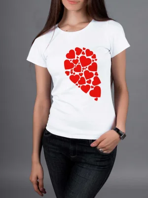 Футболка Сердца - Купить с доставкой по России в магазине Bullfinch. Приталенные футболки, Женская одежда. Гипоаллергенные краски. Премиальное качество. Размеры: L, XL, XXL