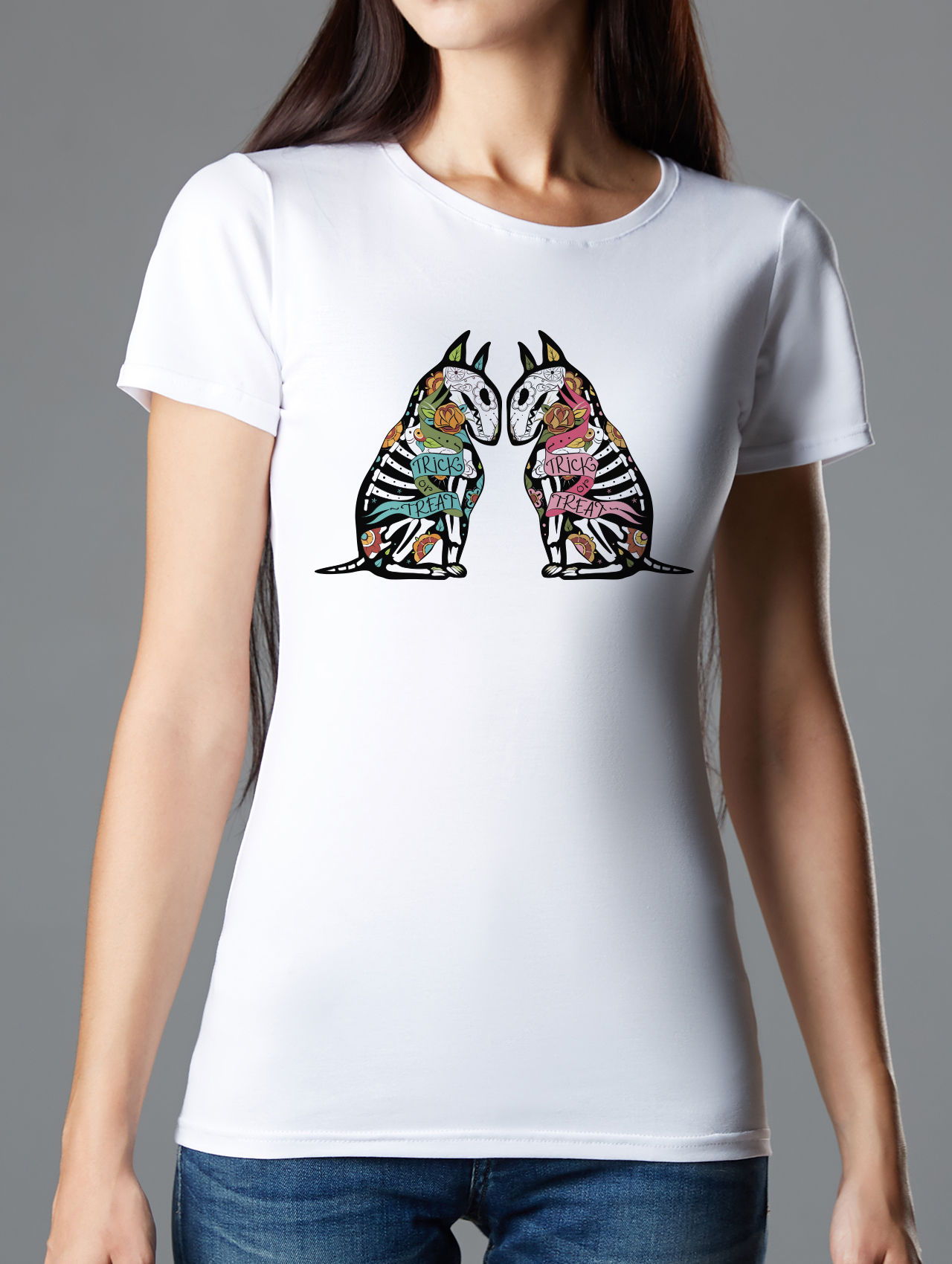 Футболка Trick or Treat dog - Купить с доставкой по России в магазине Bullfinch. Приталенные футболки, Женская одежда. Гипоаллергенные краски. Премиальное качество. Размеры: L, XL