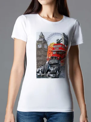 Футболка В Лондоне - Купить с доставкой по России в магазине Bullfinch. Приталенные футболки, Женская одежда. Гипоаллергенные краски. Премиальное качество. Размеры: L, XL