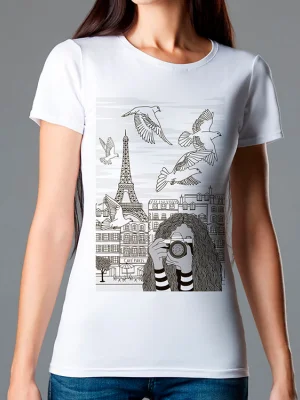 Футболка В Париже - Купить с доставкой по России в магазине Bullfinch. Приталенные футболки, Женская одежда. Гипоаллергенные краски. Премиальное качество. Размеры: L, XL