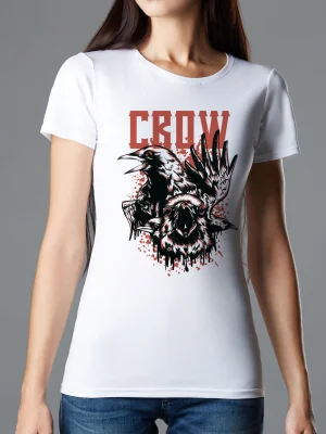 Футболка Ворона - Купить с доставкой по России в магазине Bullfinch. Приталенные футболки, Женская одежда. Гипоаллергенные краски. Премиальное качество. Размеры: L, XL
