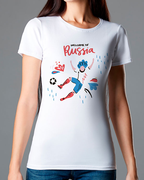 Футболка Welcome to Russia! - Купить с доставкой по России в магазине Bullfinch. Приталенные футболки, Женская одежда. Гипоаллергенные краски. Премиальное качество. Размеры: L, XL