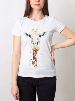 Футболка Жираф - Купить с доставкой по России в магазине Bullfinch. Приталенные футболки, Женская одежда. Гипоаллергенные краски. Премиальное качество. Размеры: L, XL, XXL