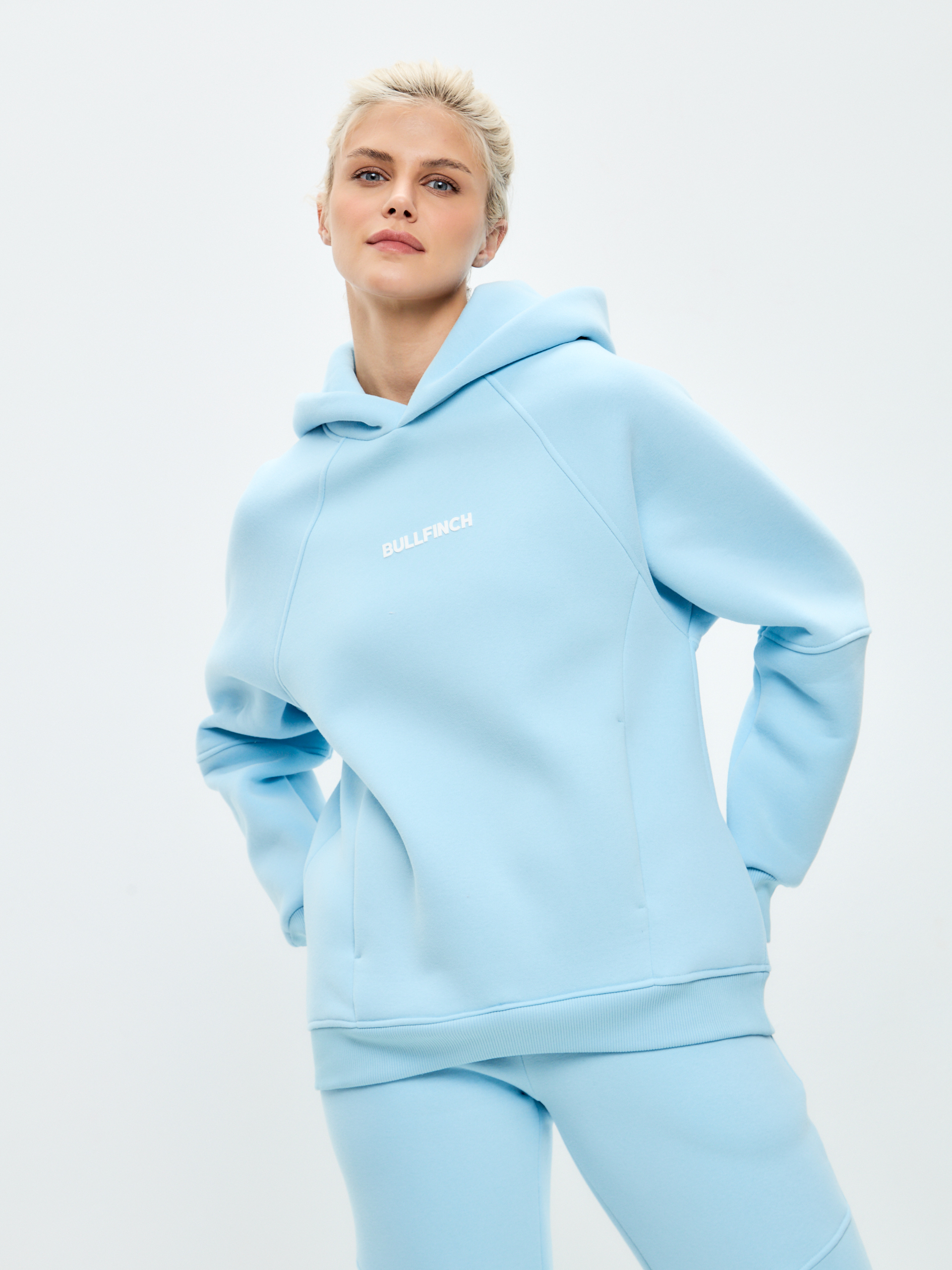 Худи с начесом голубой - Купить с доставкой по России в магазине Bullfinch. С начесом, Женская одежда. Гипоаллергенные краски. Премиальное качество. Размеры: L