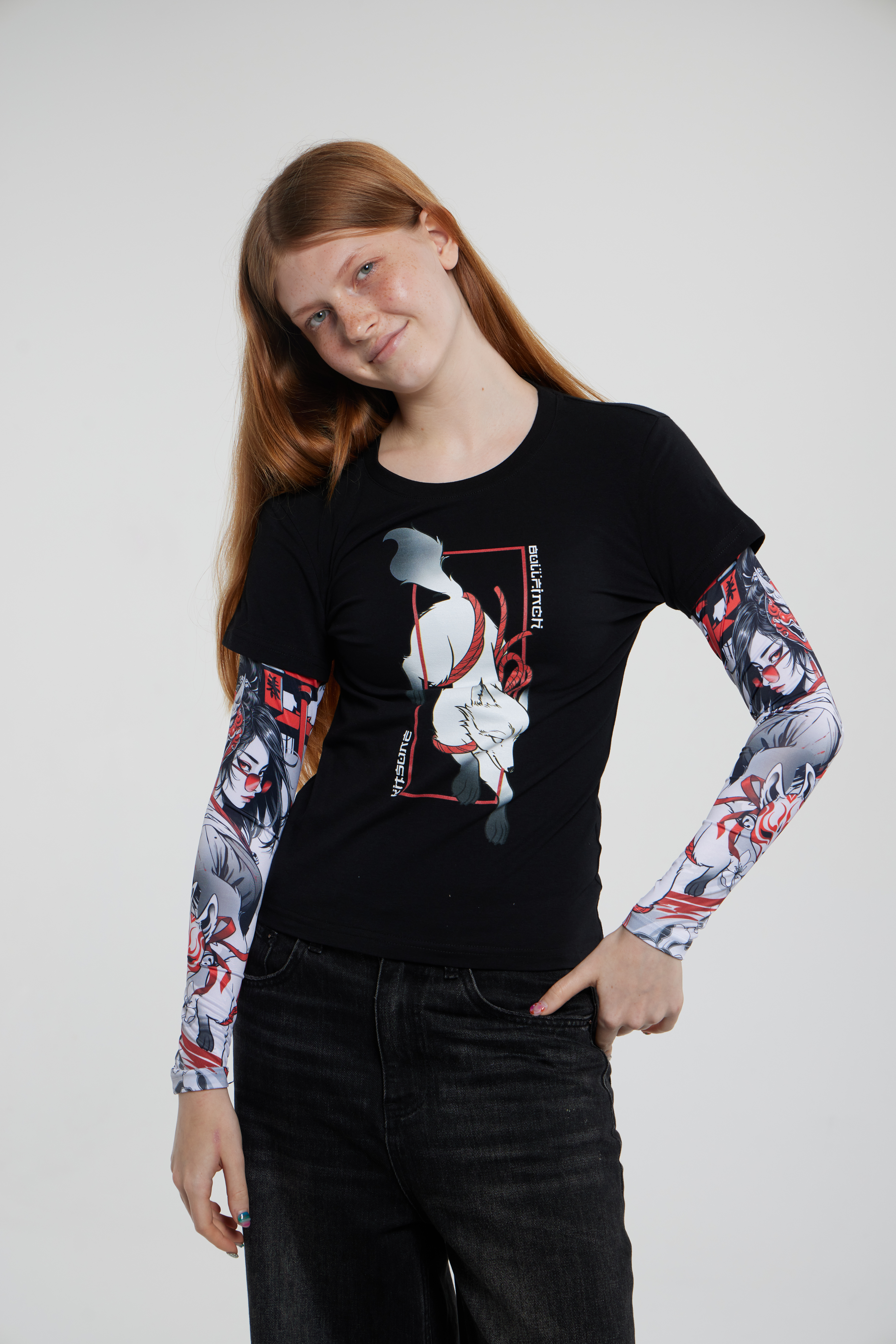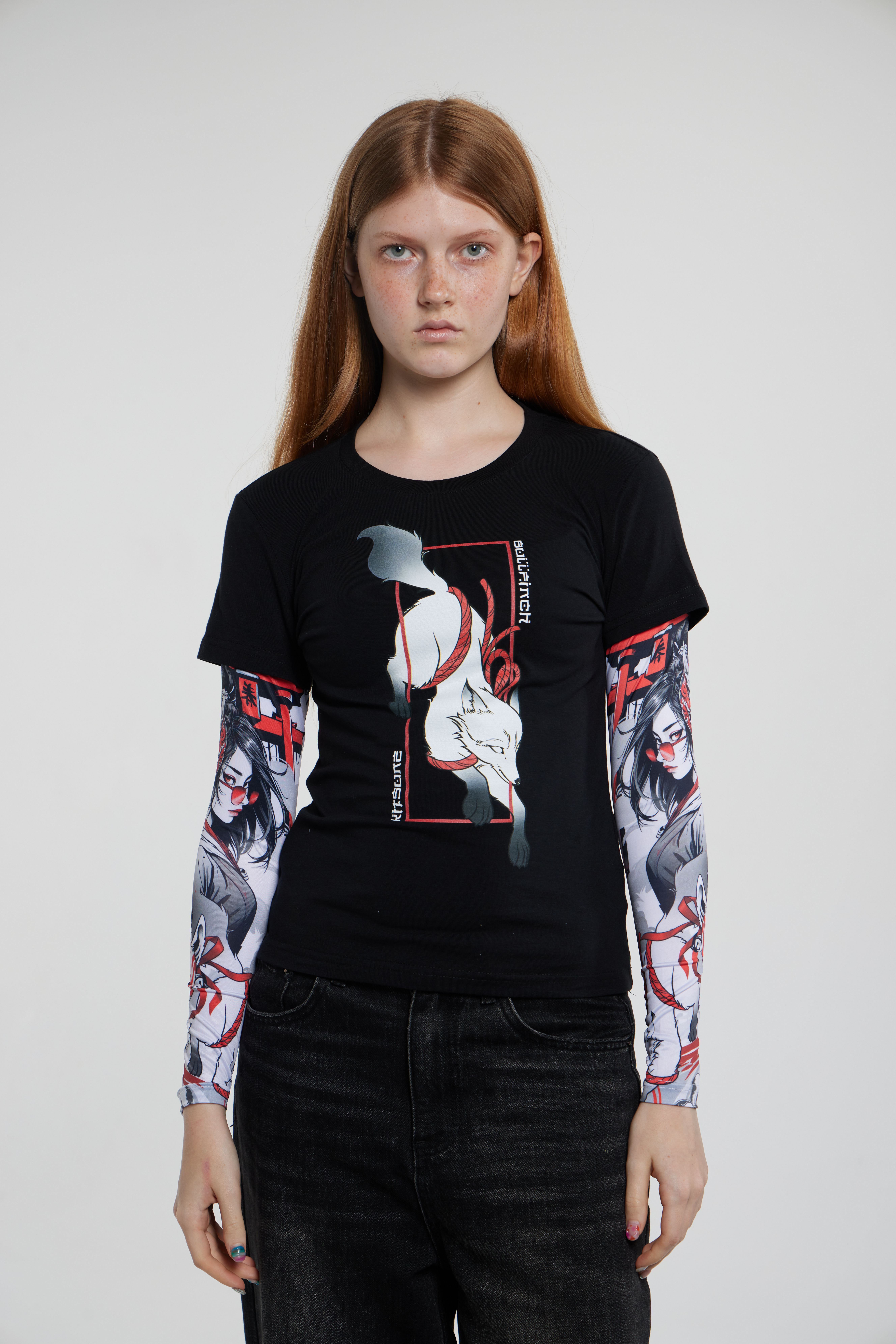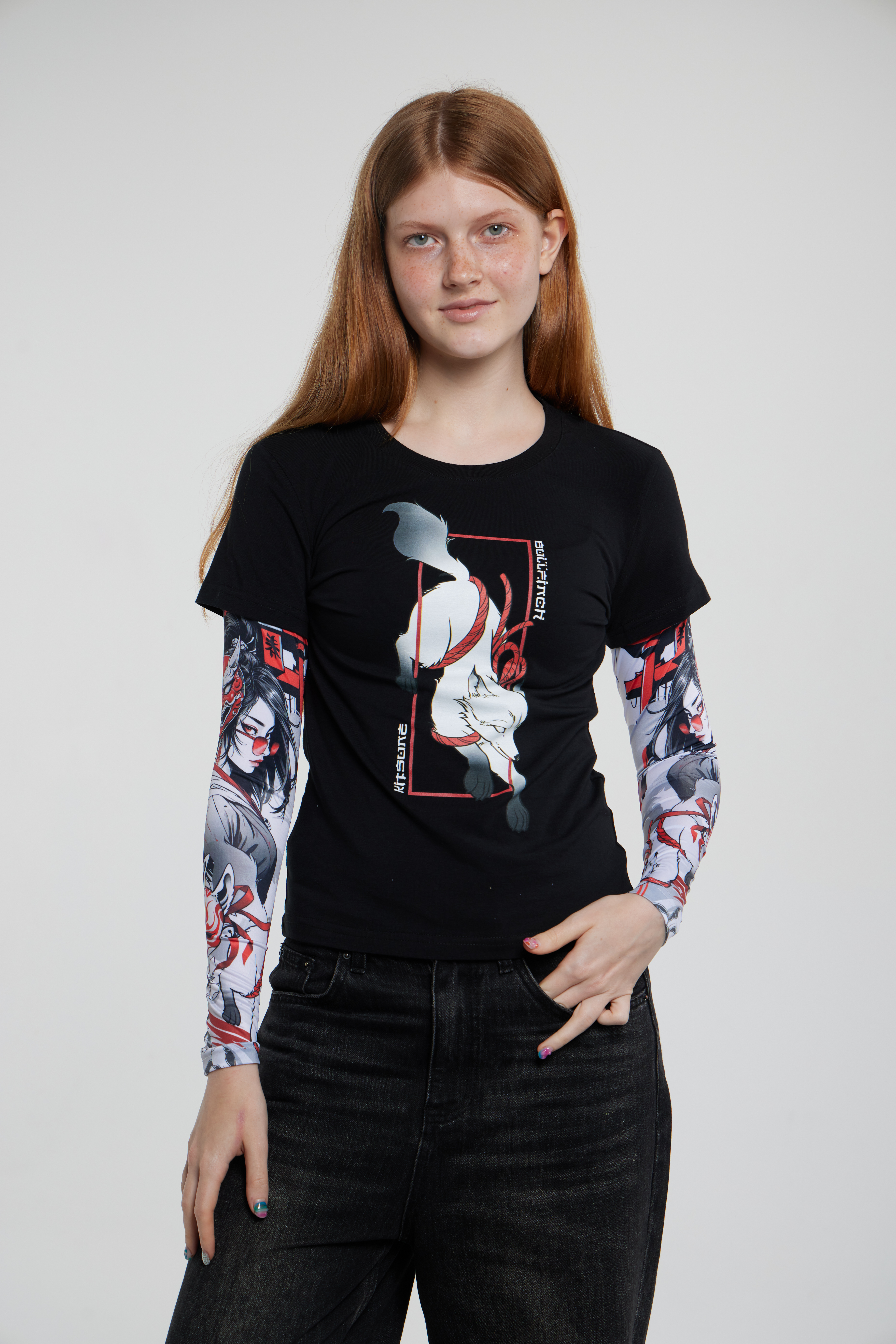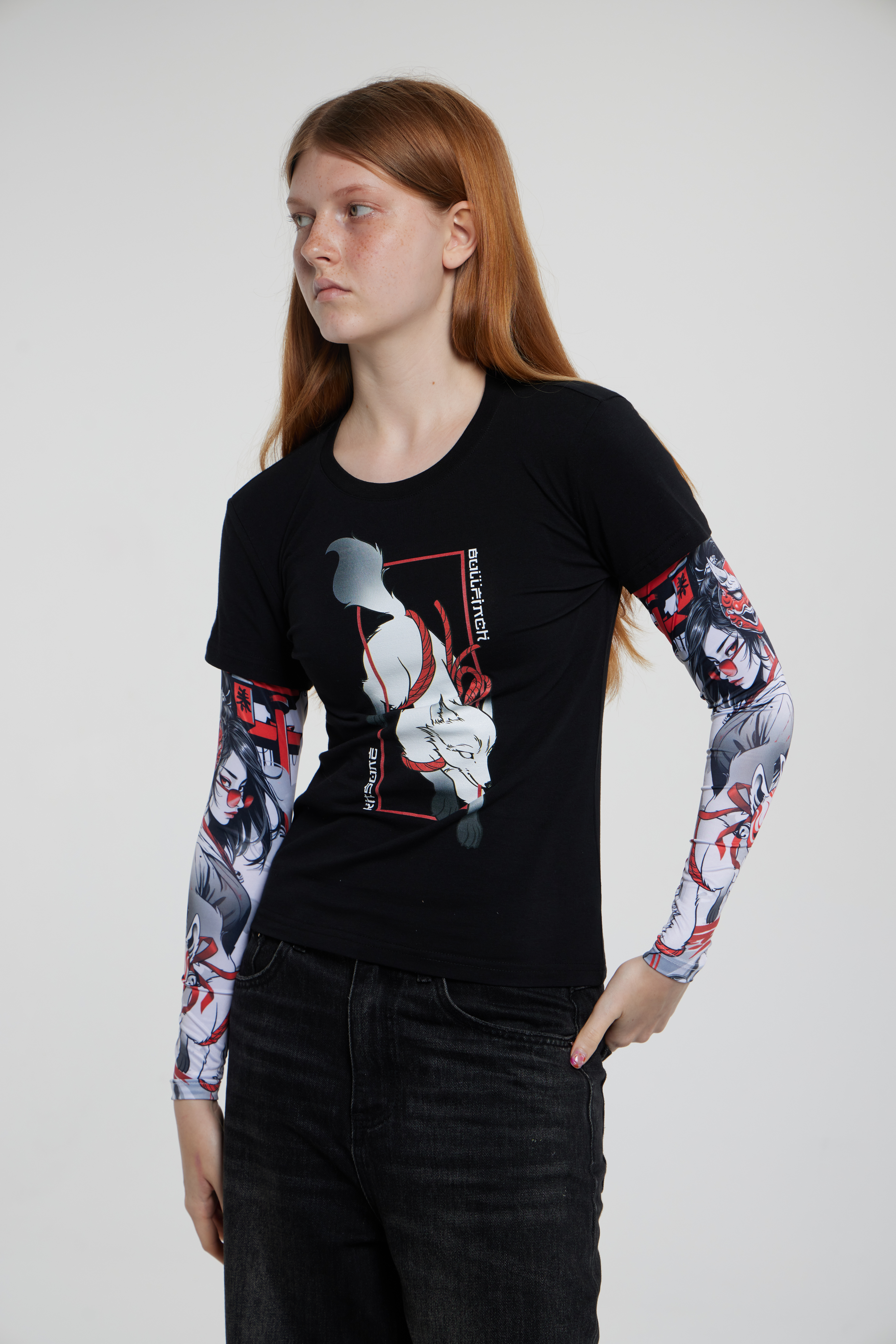 Лонгслив "Лиса" рукав девушка самурай - Купить с доставкой по России в магазине Bullfinch. Лонгсливы, Женская одежда. Гипоаллергенные краски. Премиальное качество. Размеры: L, XL, XXL