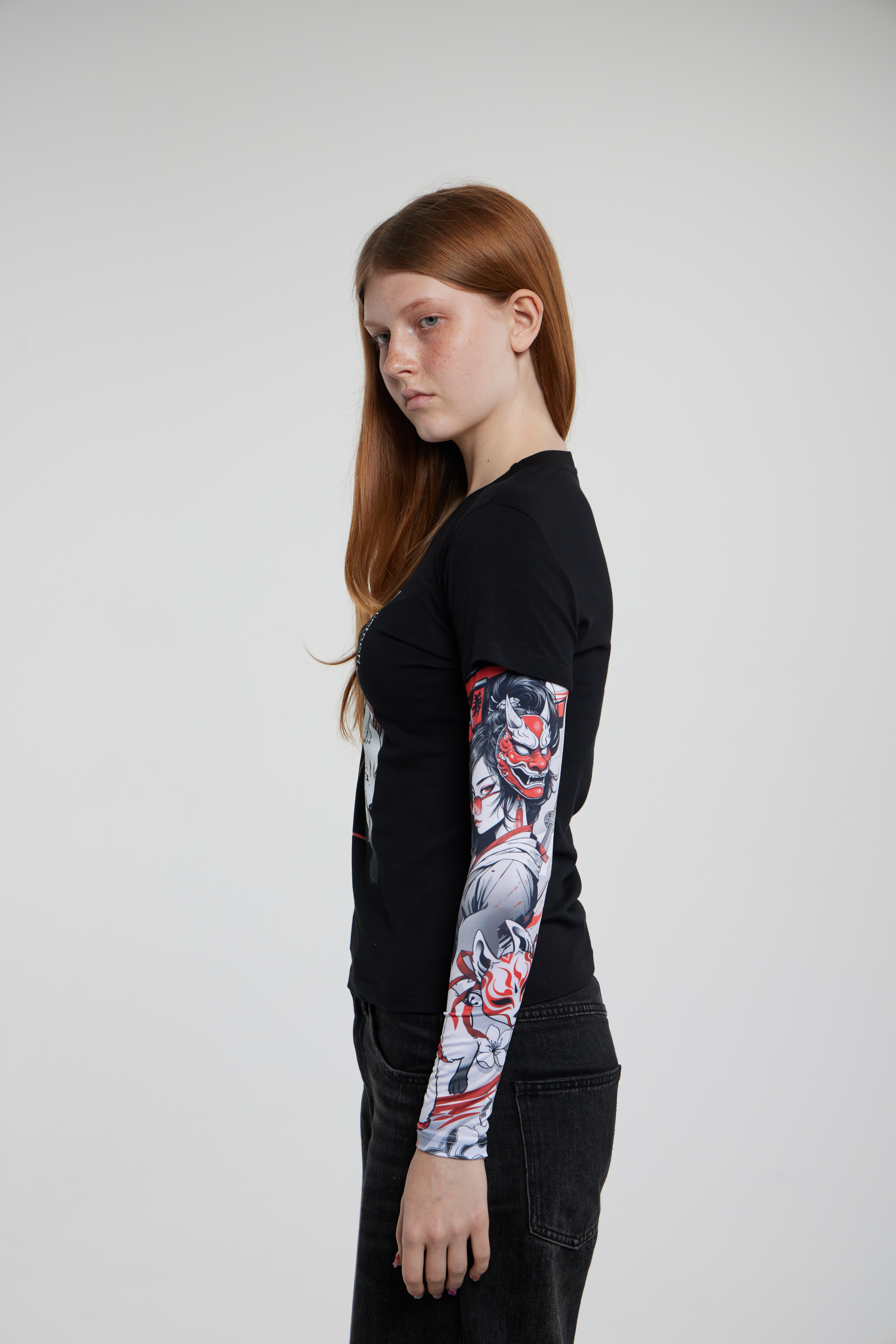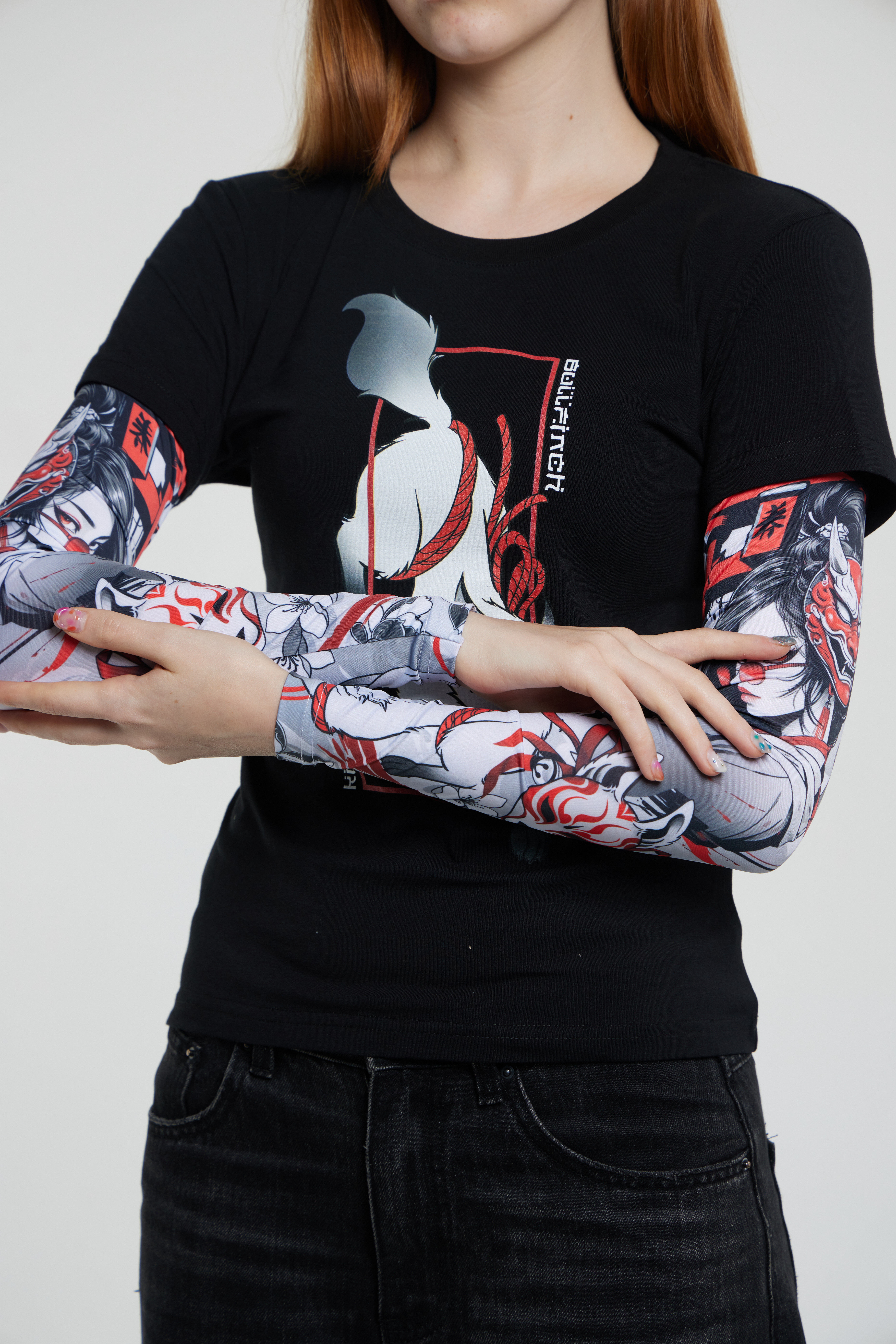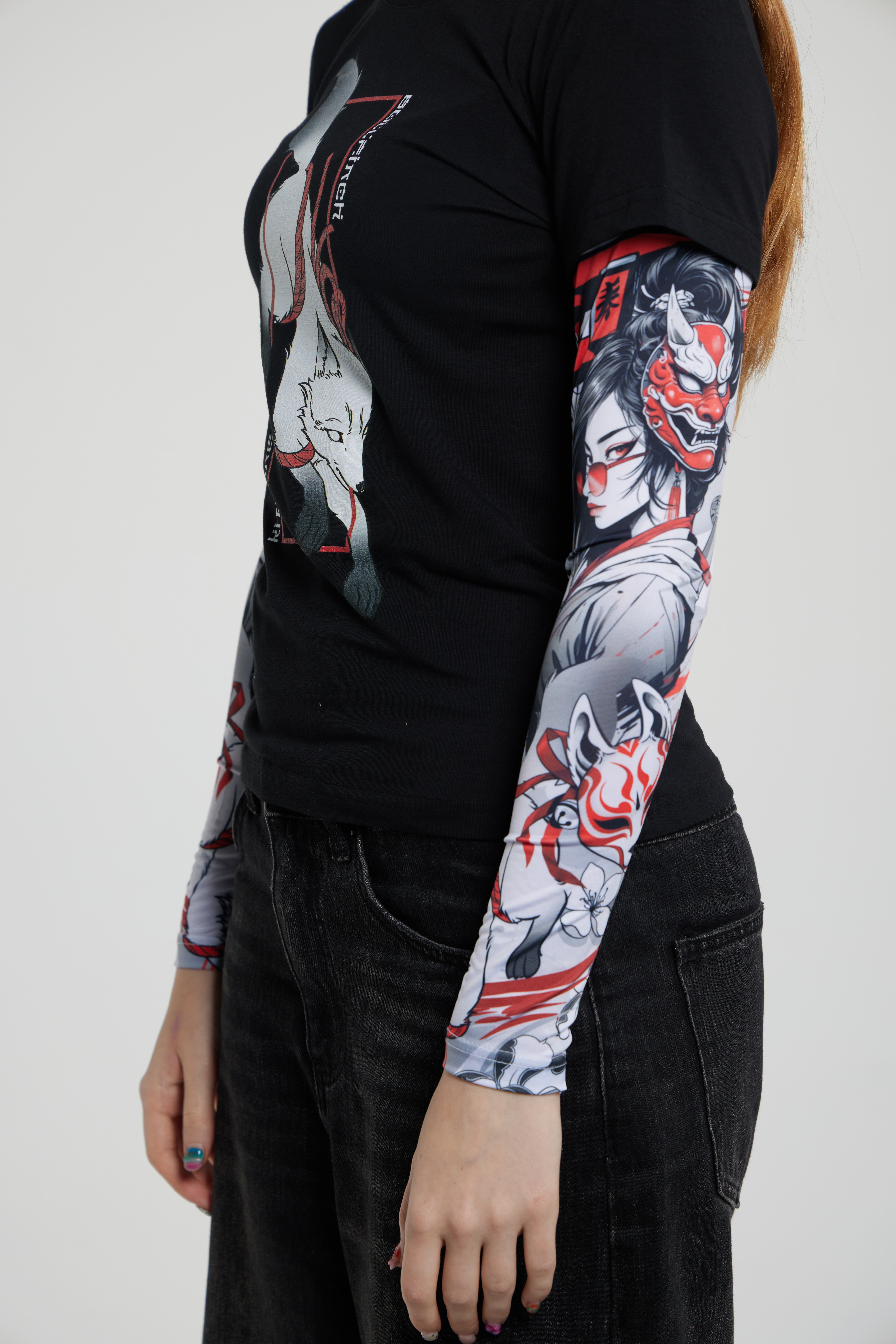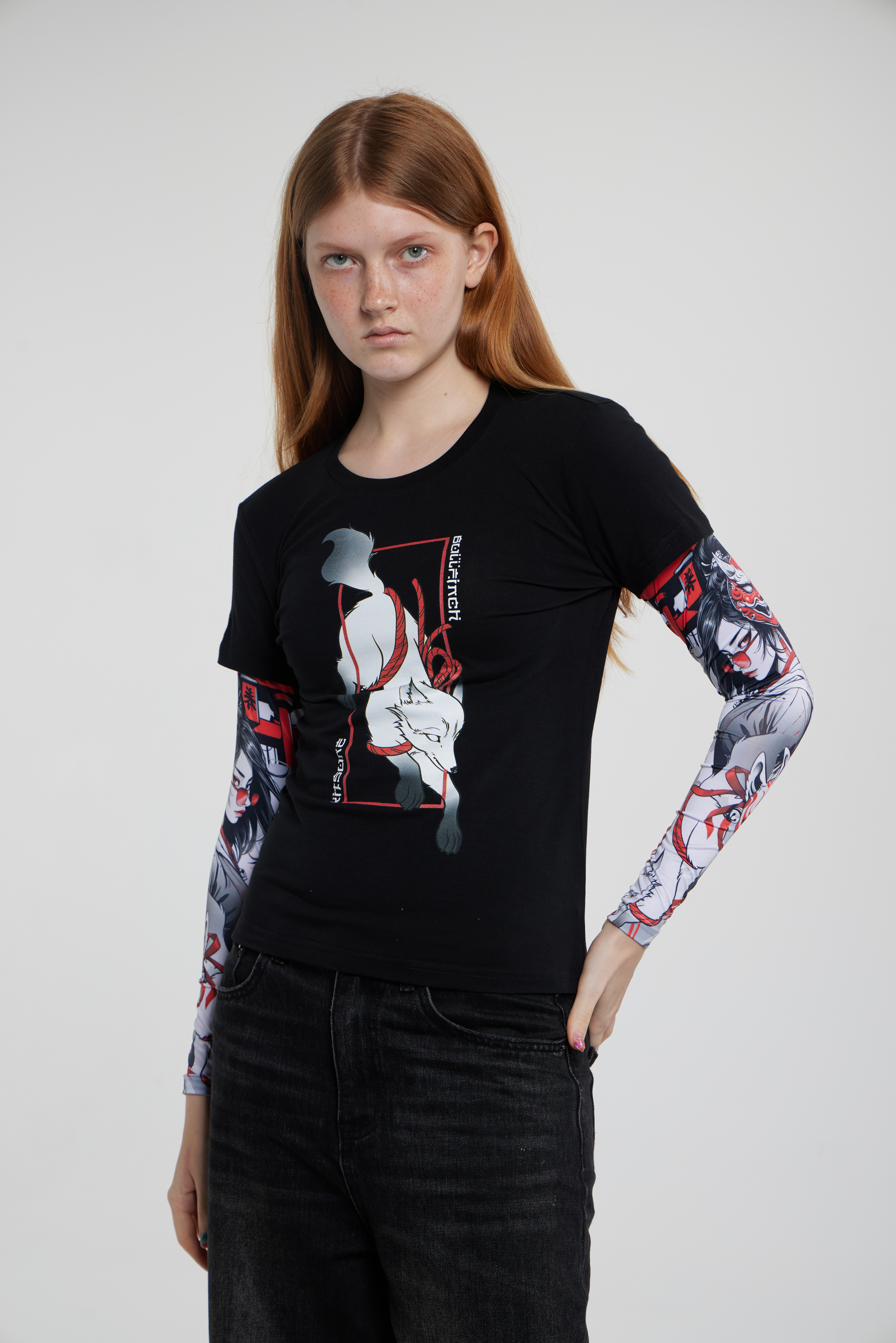 Лонгслив "Лиса" рукав девушка самурай - Купить с доставкой по России в магазине Bullfinch. Лонгсливы, Женская одежда. Гипоаллергенные краски. Премиальное качество. Размеры: L, XL, XXL