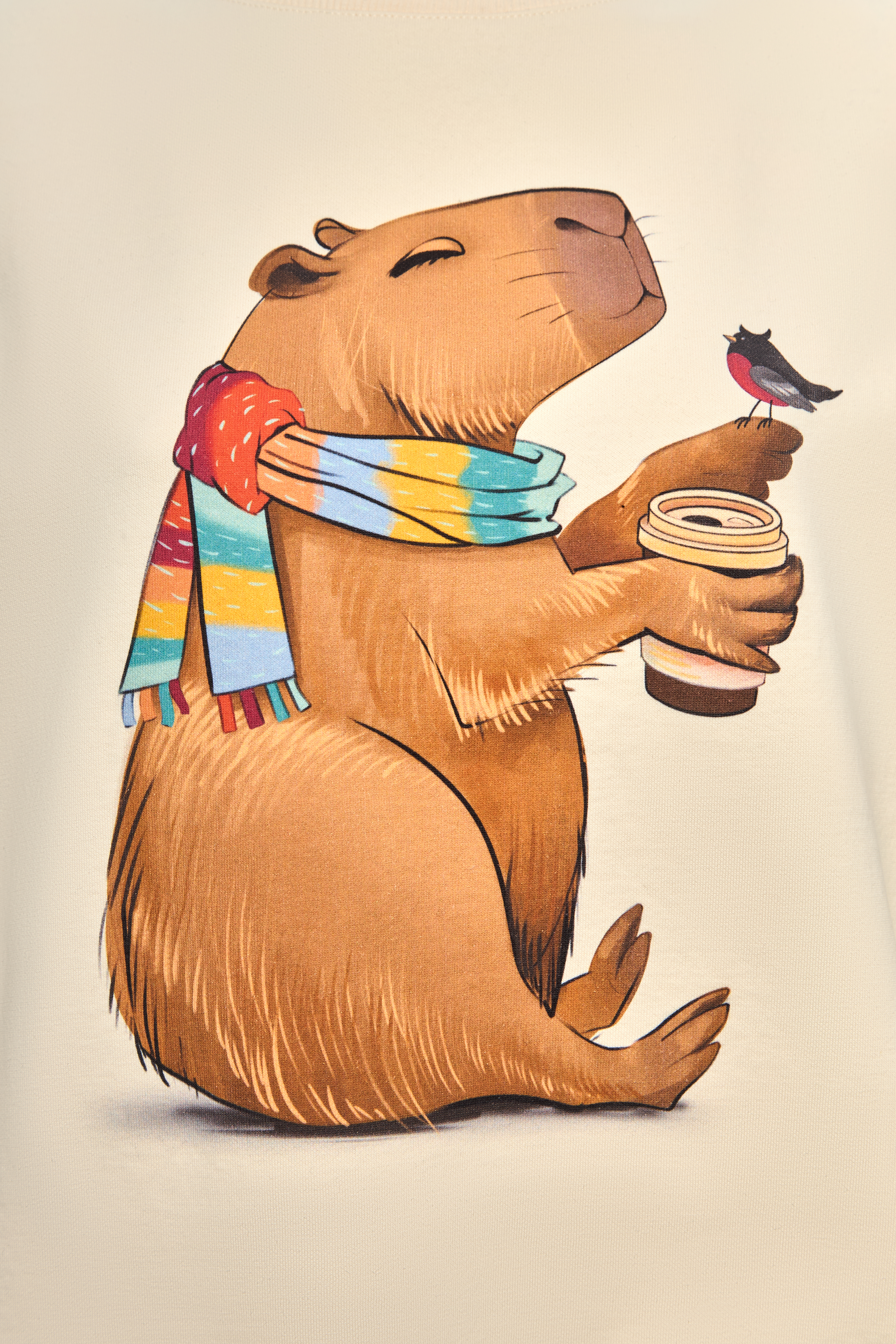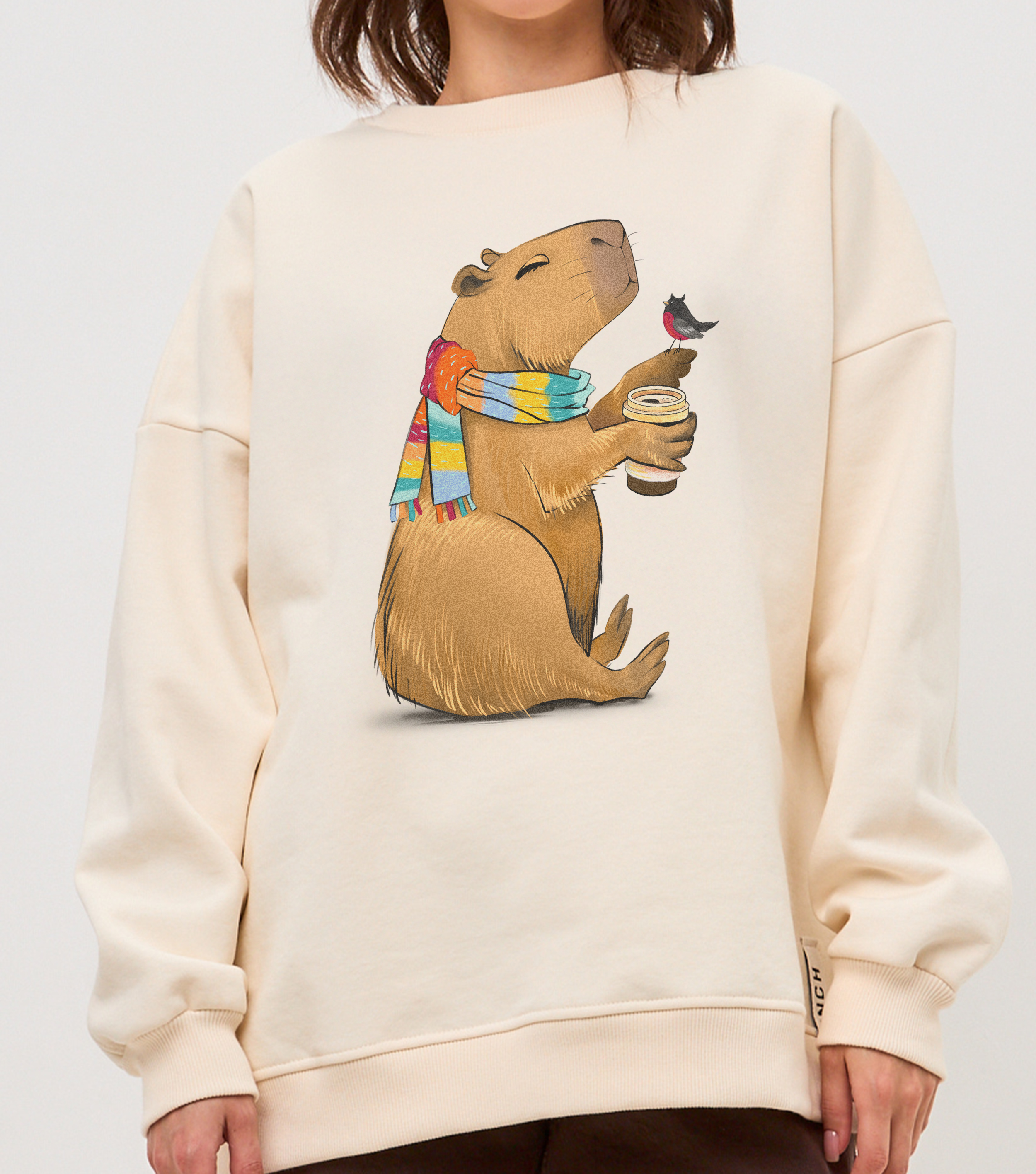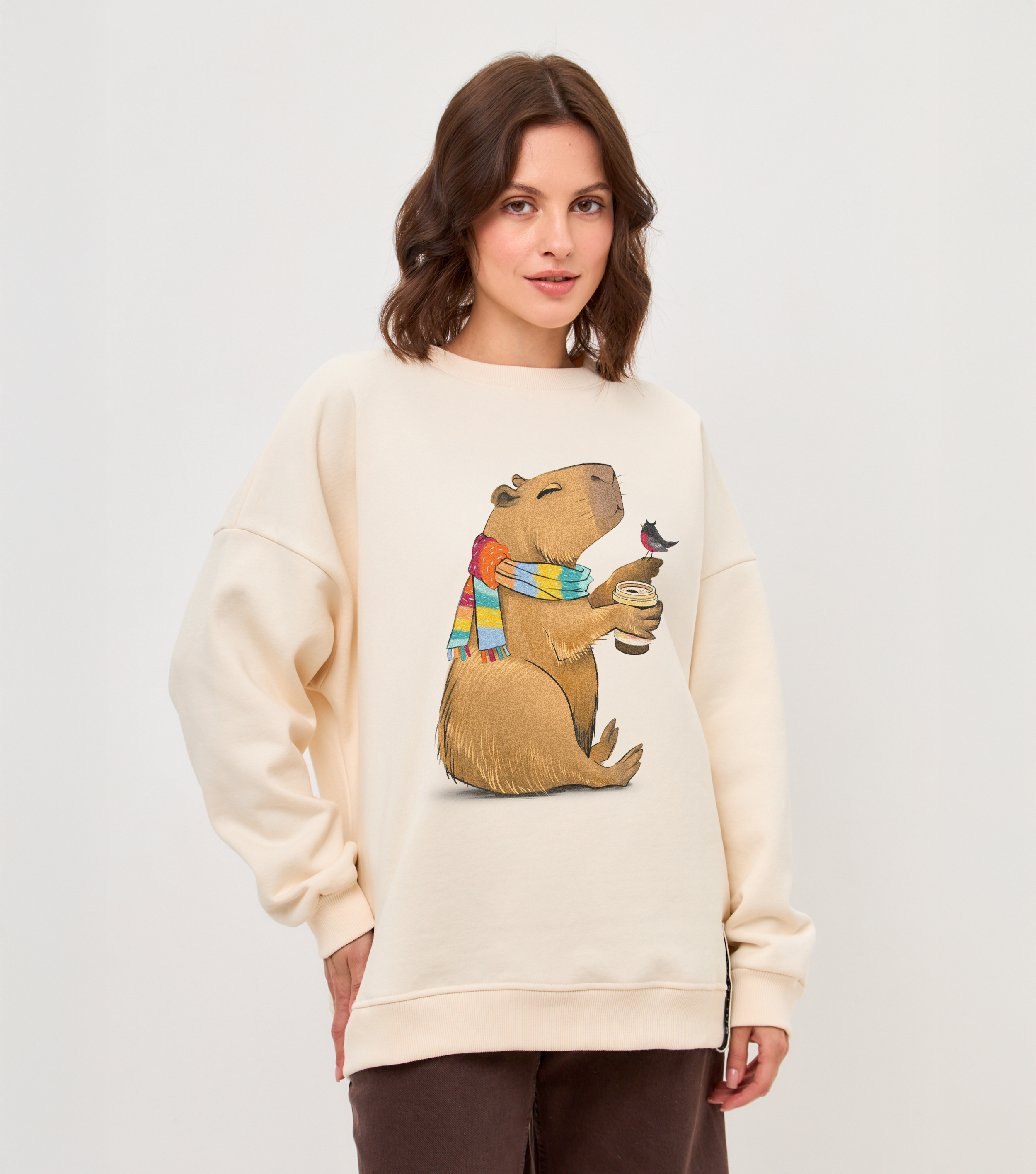 Свитшот Капибара со стаканчиком - Купить с доставкой по России в магазине Bullfinch. Свитшоты, Женская одежда. Гипоаллергенные краски. Премиальное качество. Размеры: L