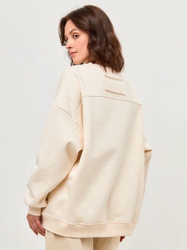 Свитшот из высококачественного плотного футера с начесом - отличный выбор для создания стильного и комфортного образа. Футер с начесом обеспечивает мягкость и тепло.
